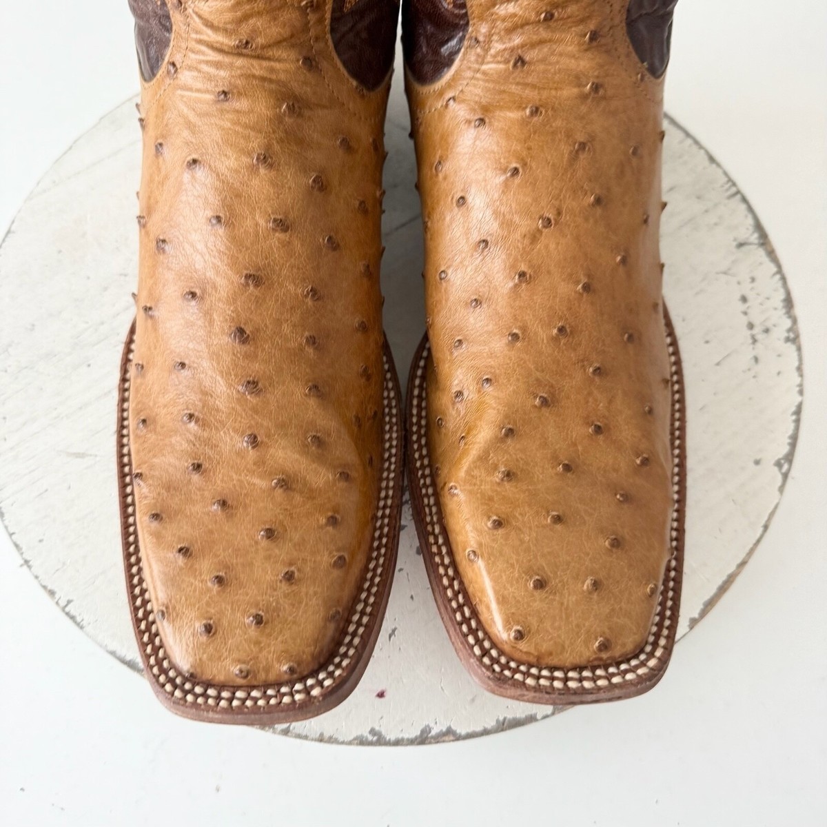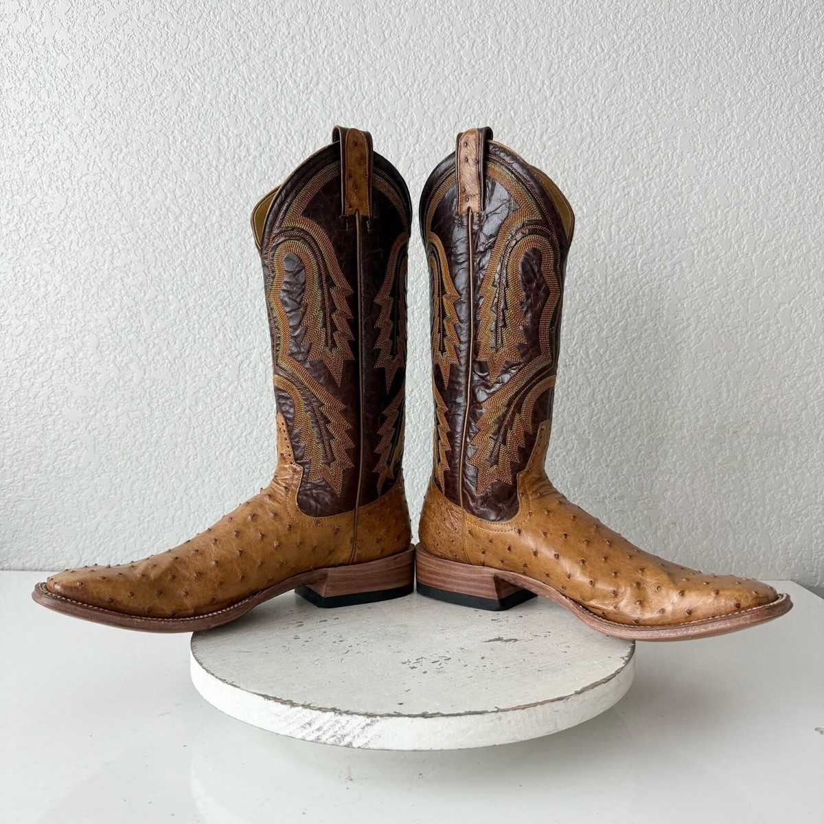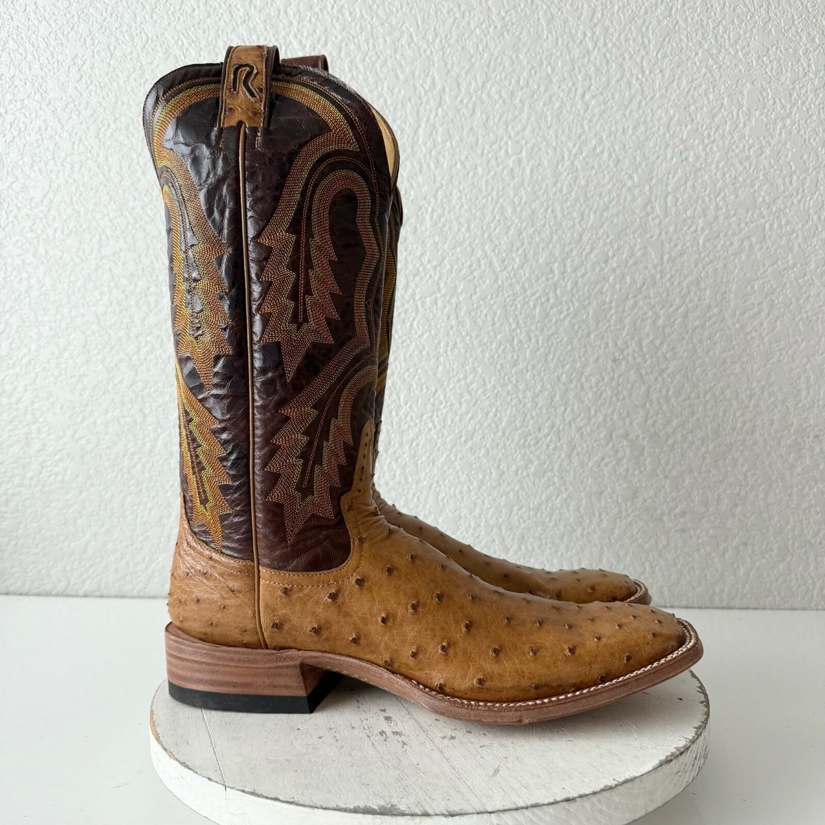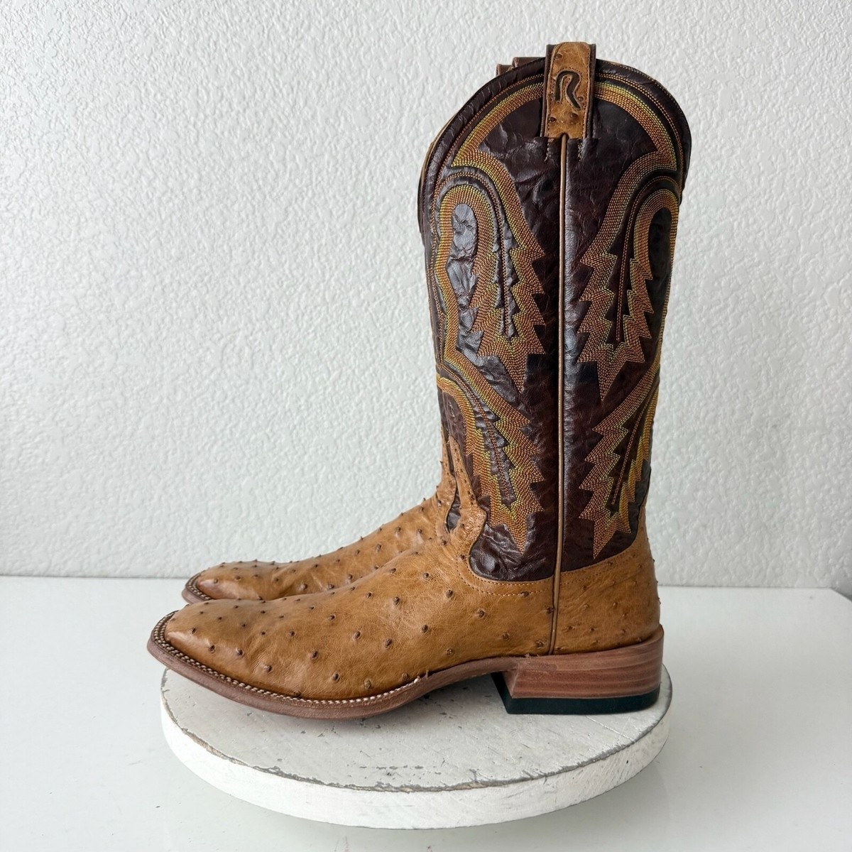 Rod Patrick Mens Cowboy Boots Size 10.5AAA Brown Full Quill Ostrich Square Toe