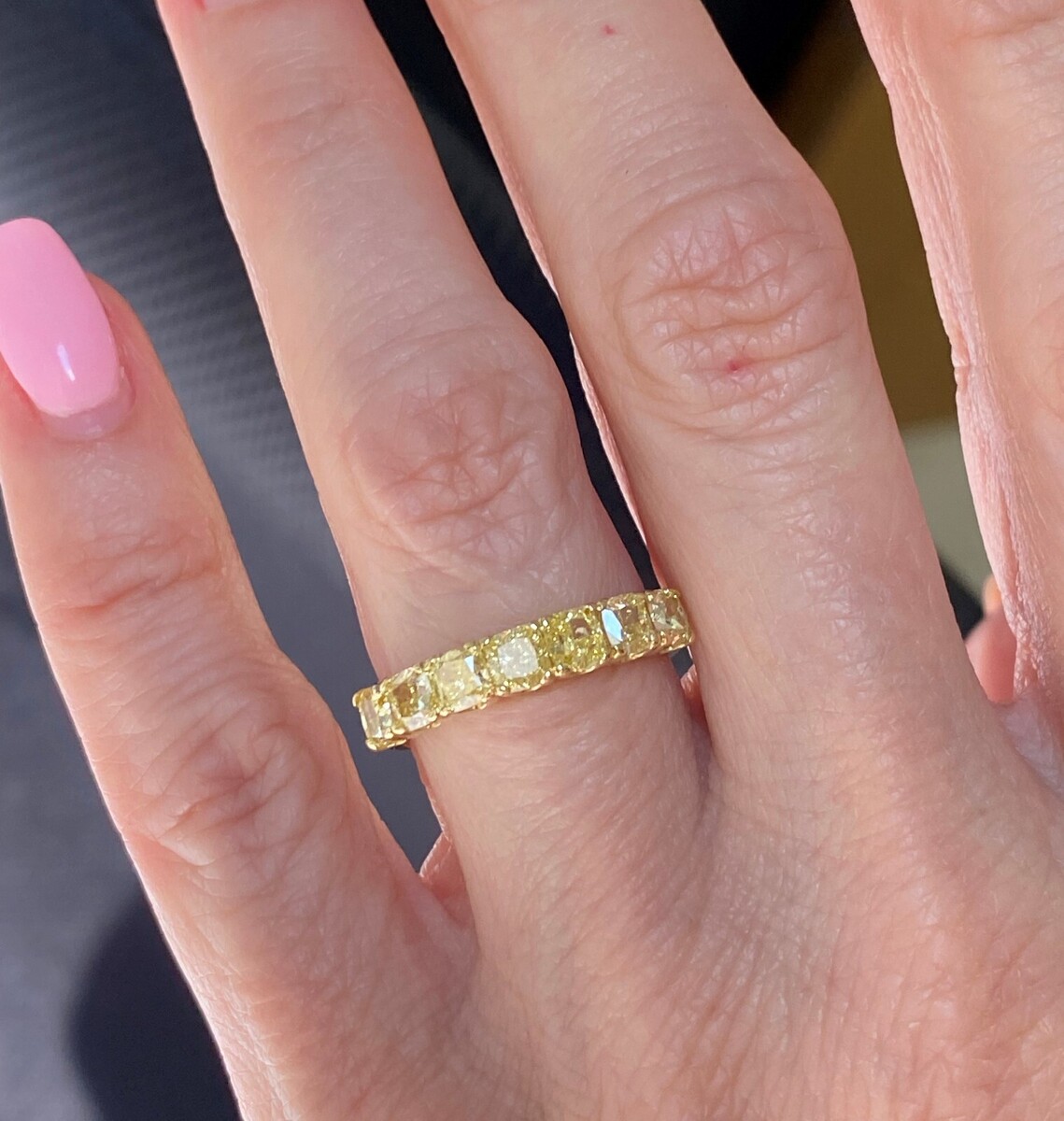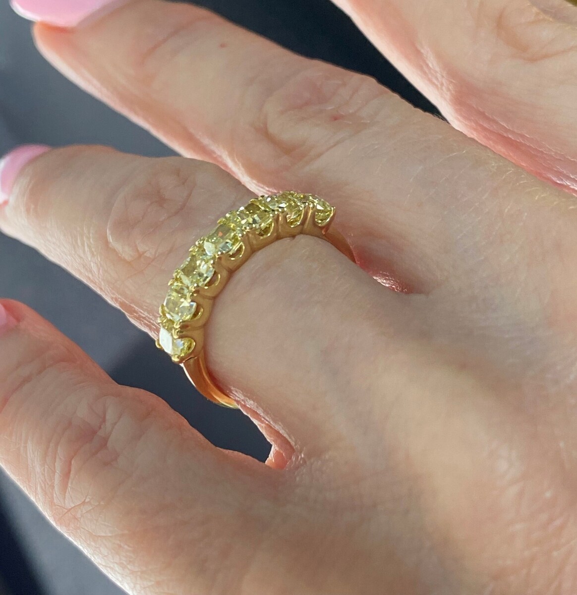 7 Stone Fancy Gelb 1,58 Ct Kissen Diamant Band 18k Gold