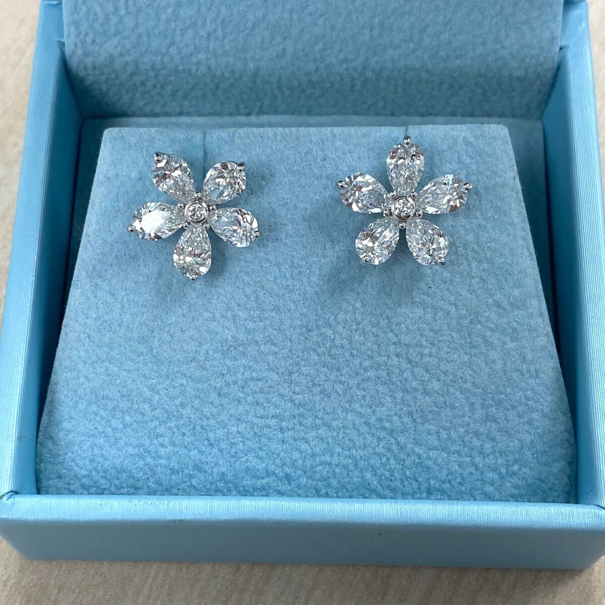 3CT Floral Tachuelas Laboratorio Crecido Pera Forma Diamante Racimo Aretes 14K