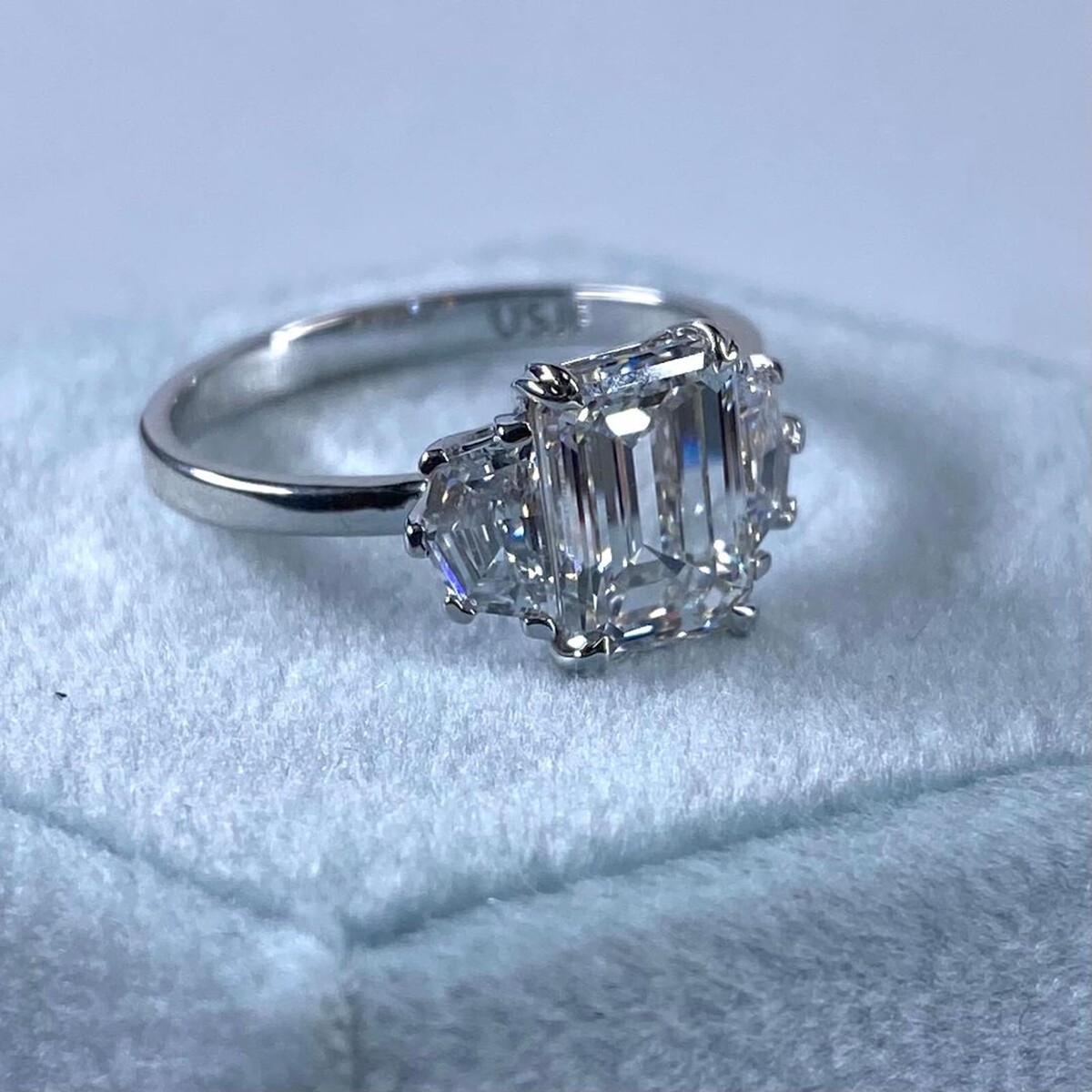 3 Stein Kunstdiamanten Grown Smaragd Diamantring Igi Zertifiziert 2.45 TCW F-VS1