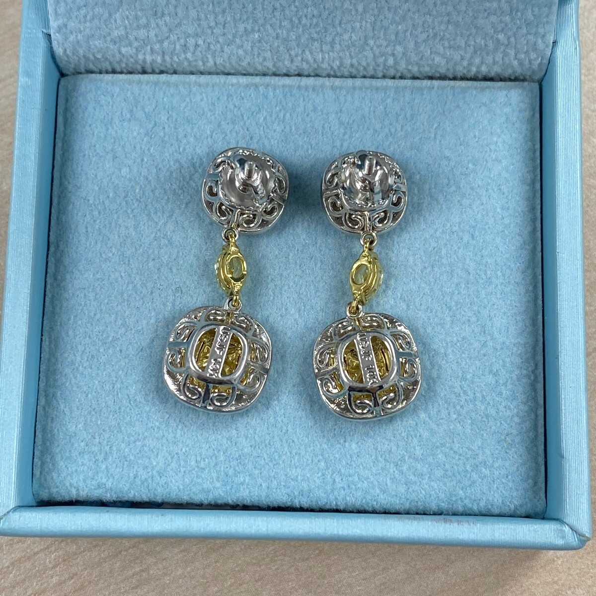 Natural Elegante Amarillo Amortiguador Corte Diamante Dormilonas 14k Oro Blanco