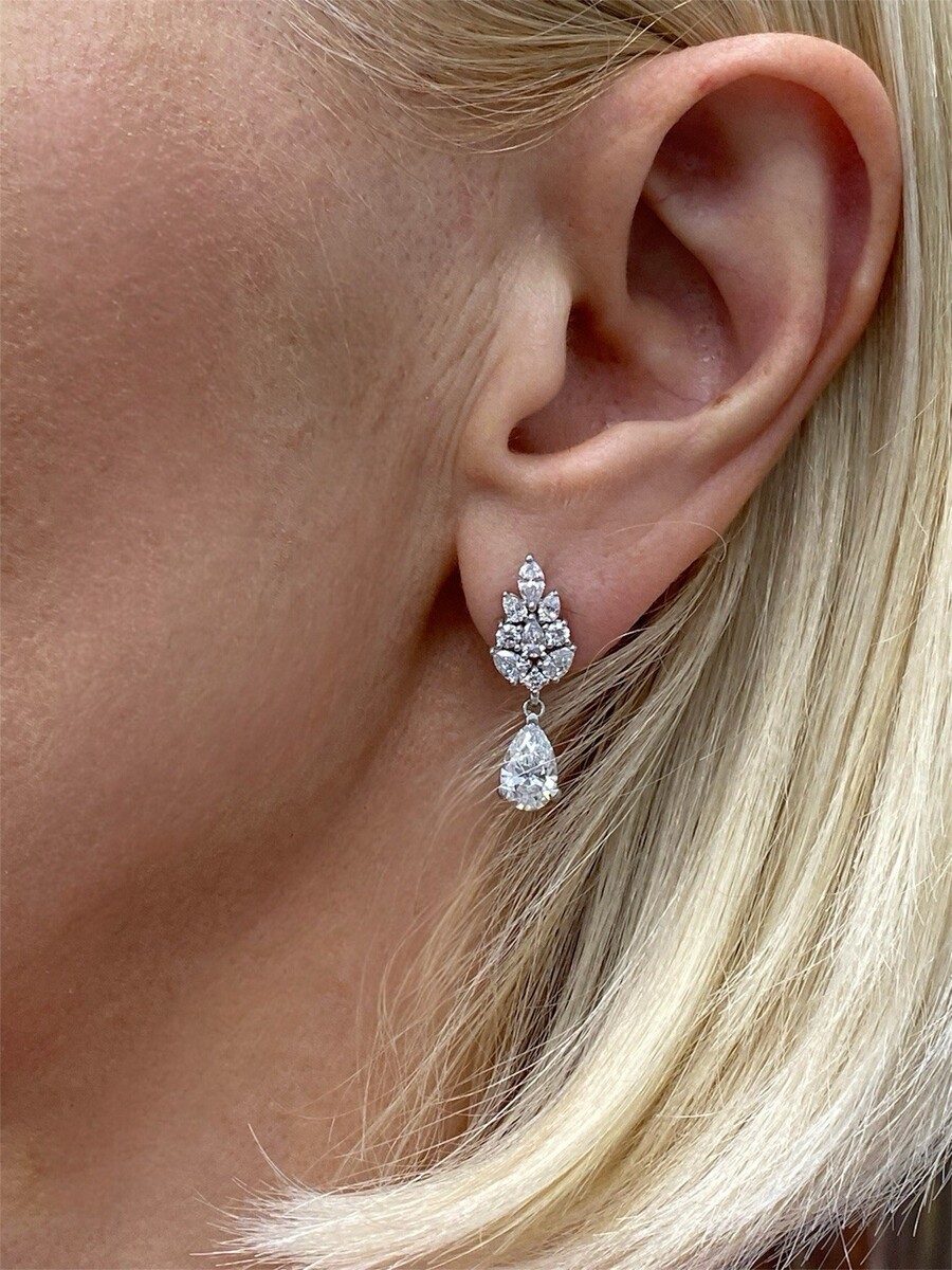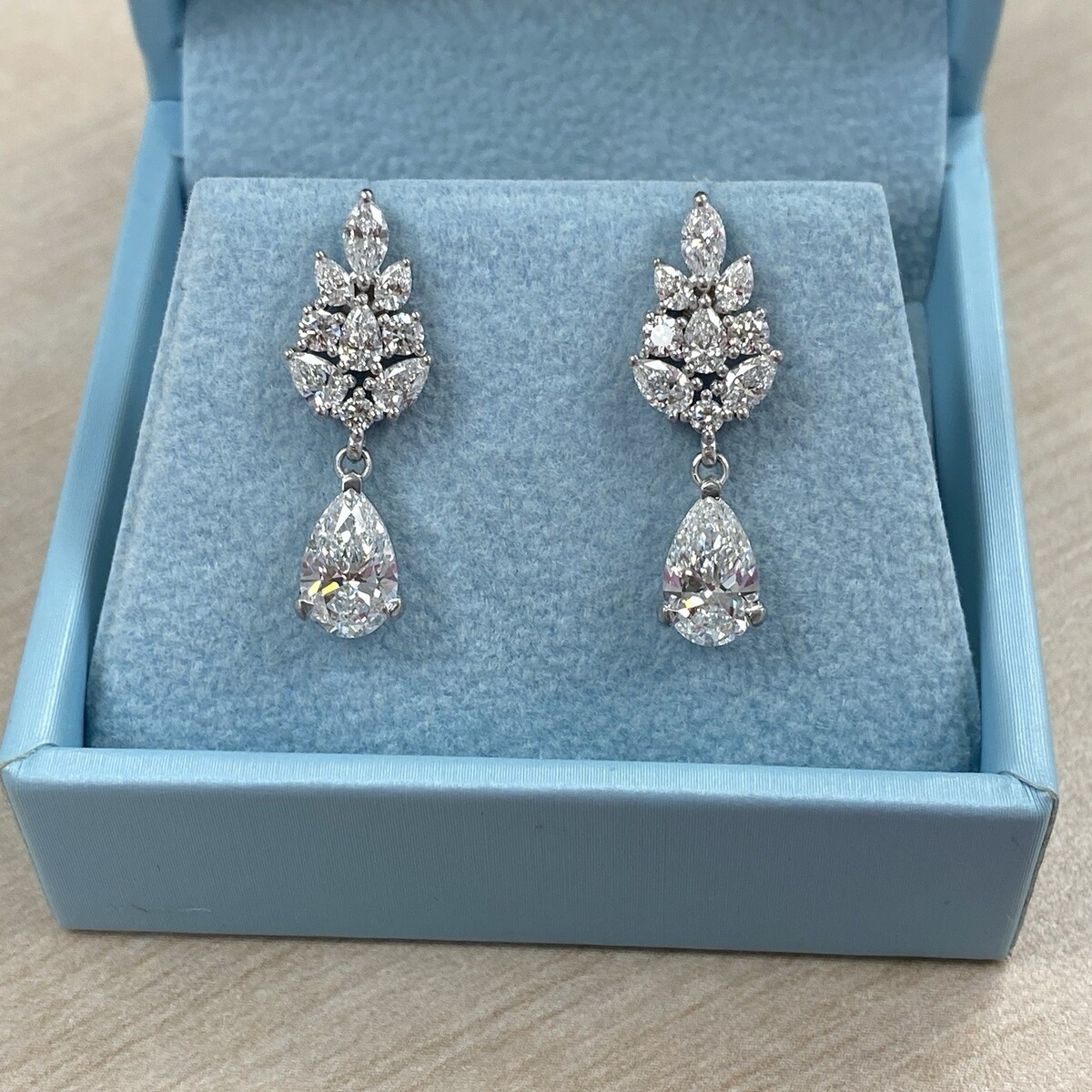 Diese exquisiten Ohrringe verfügen über Pear Brilliant Cut -Labor, die elegant baumeln, und verleihen einem Braut oder einem formellen Ensemble einen Hauch von Raffinesse. IGI -Zertifikat Pear Brilliant Cut Labor -Diamanten, bekannt für ihre außergewohnliche sparkle und zeitlose Eleganz. Zusatzliche Runde, Birnen und Marquise Brilliant Cut -Labor erhohen Diamanten die allgemeine Brillanz und das Feuer der Ohrringe. Die Ohrringe sind in 14.000 Weißgold gefertigt und bieten eine klassische und luxuriose Kulisse, die die funkelnden Diamanten wunderbar erganzt !!