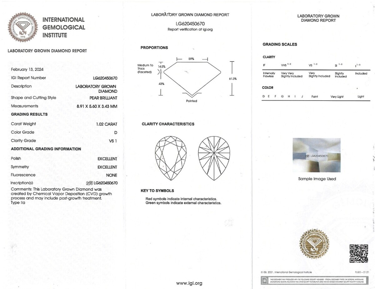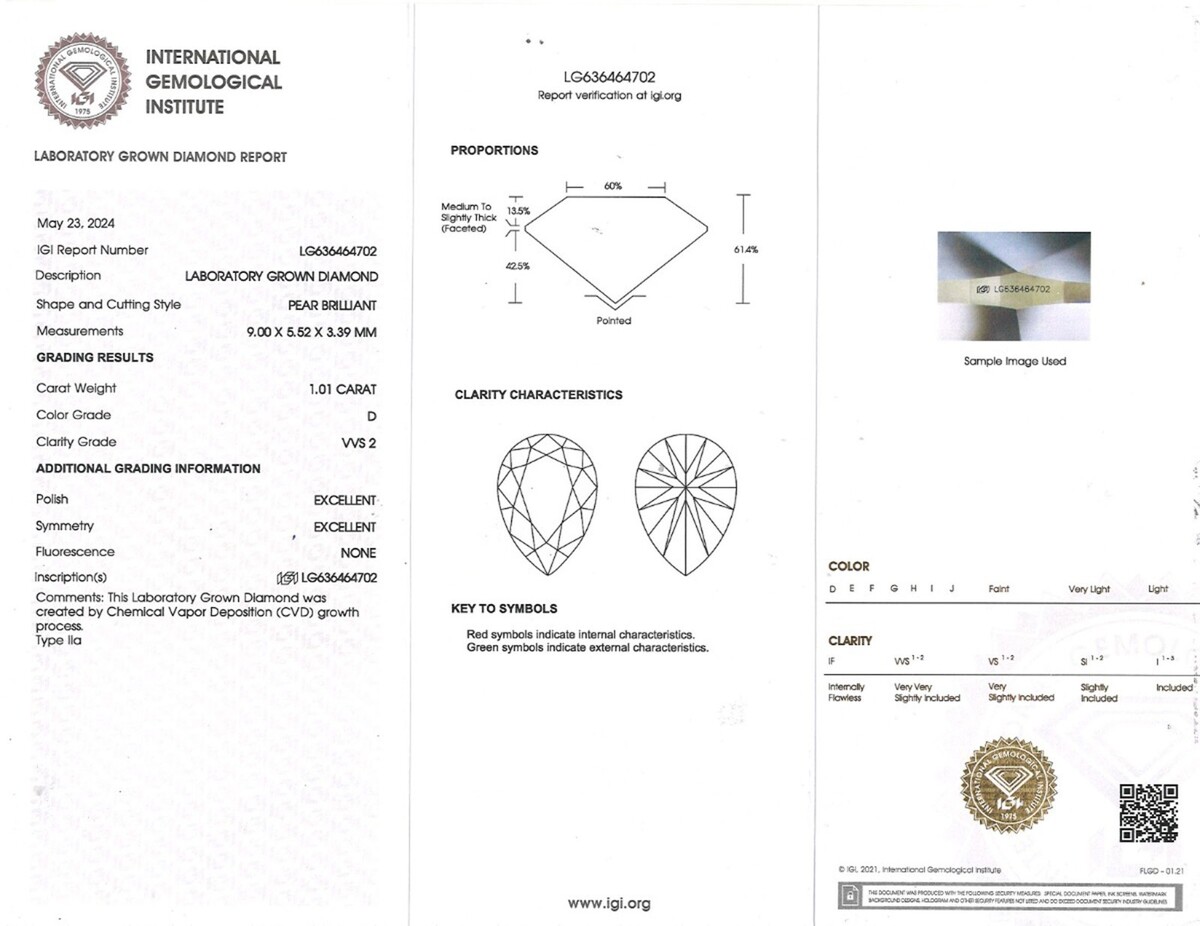 Igi 3.79 Gesamt Karat Gewicht Birne Brillantschliff Kunstdiamanten Grown Diamant