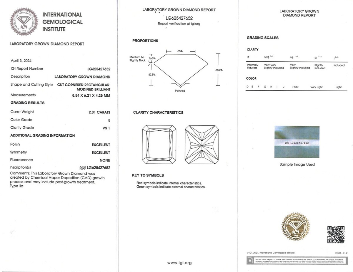 La bague est livree avec le numero de rapport LG625427652 de l'Institut international de gemmologie (IGI).
