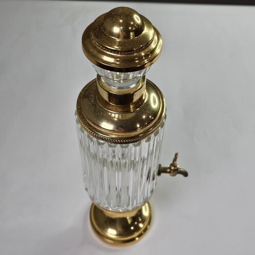 Antique Dispensing Decanter Ribbed Clear Glass Gold Mini Faucet And Accents 14in