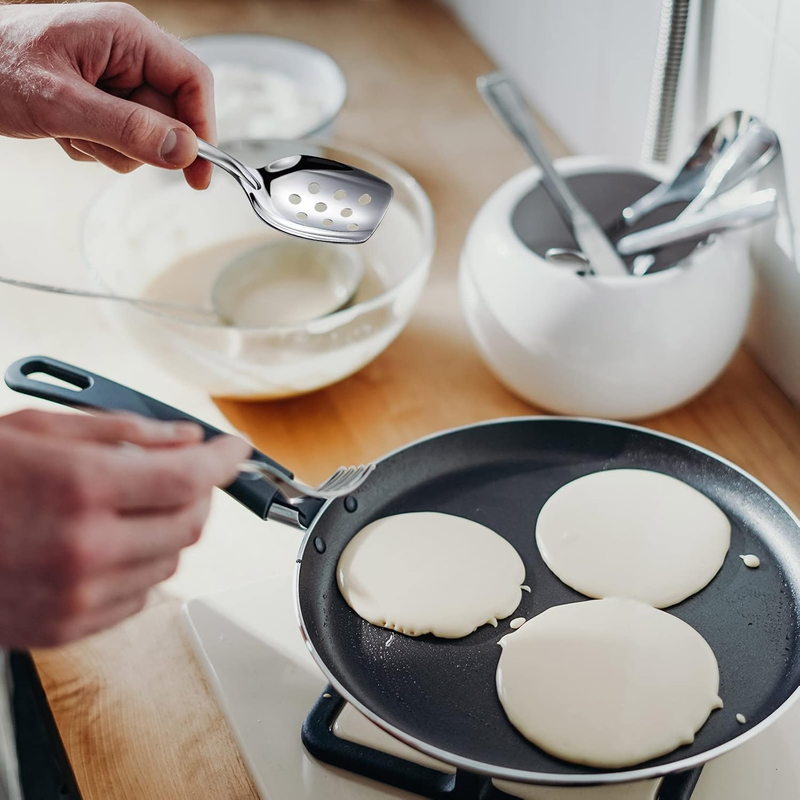 4 Pack Large Serving Spoons Flat Bottom Cooking Slotted Spoon Stainless Steel fo