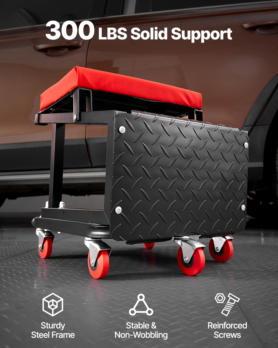 VEVOR Mechanic Stool, 300 lbs Capacity Black Garage Seat/Work Stool with Wheels