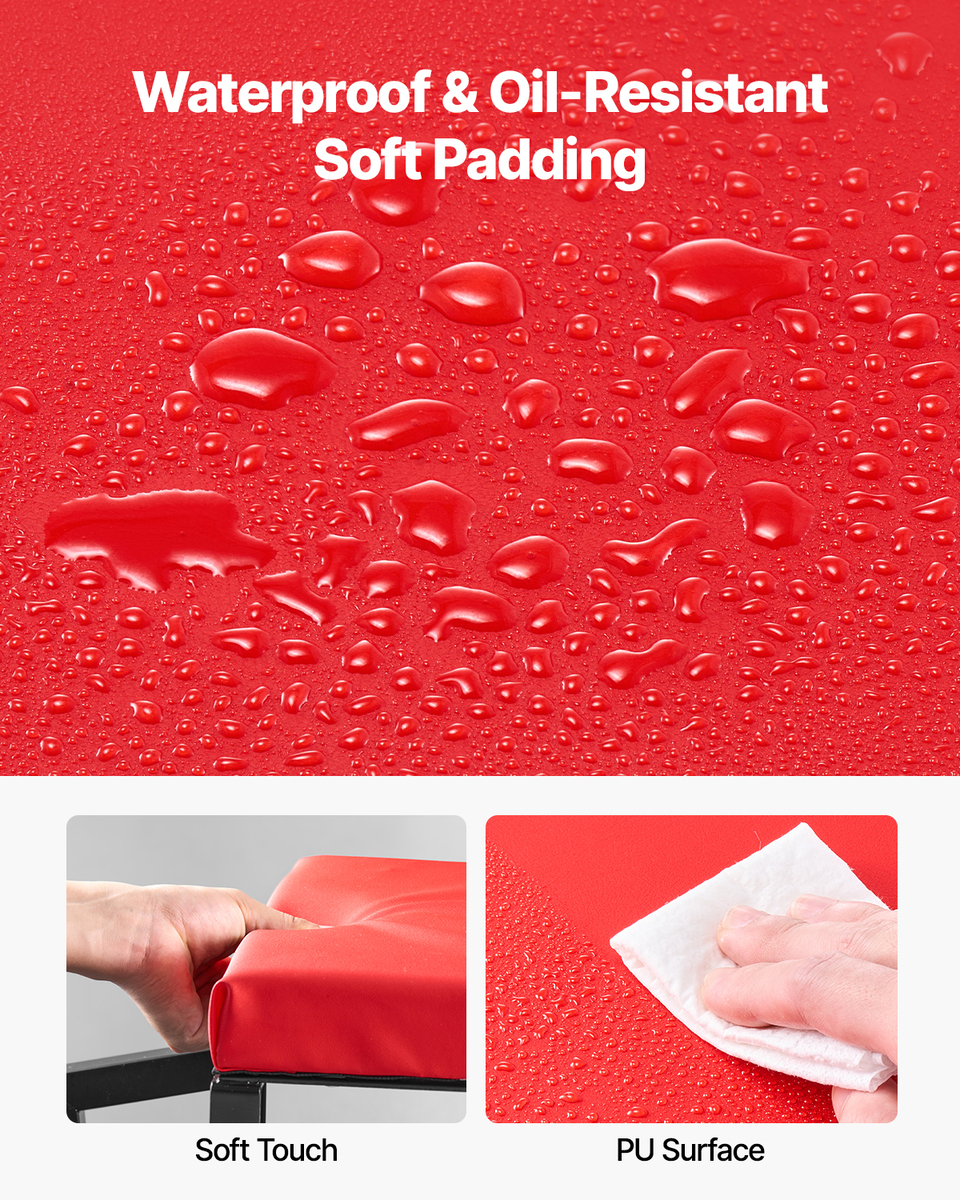 Waterproof Cushion: Our creeper stool features a large, soft pearl cotton cushion that allows long hours of sitting while working. The surface is waterproof and oil-resistant PU synthetic leather, which is easy to wipe clean, making it ideal for garage, roadside, and indoor/outdoor repair and cleaning tasks.