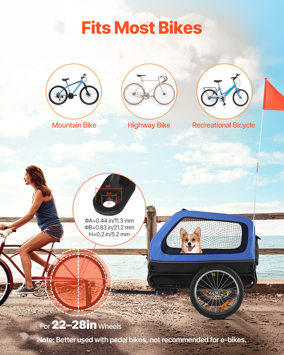Universal Coupler for Most Adult Bikes: This dog bike trailer easily attaches to 22-28 inch rear wheel bicycles with the included coupler—quick to set up, stable to tow