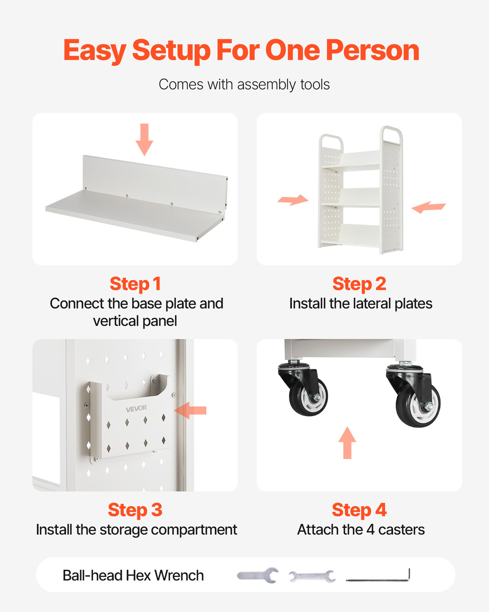 Quick Installation: No need for complex tools! The library book cart is easy to assemble with pre-drilled holes, so you’ll have it ready in no time. Includes an installation guide and extra screws for your convenience