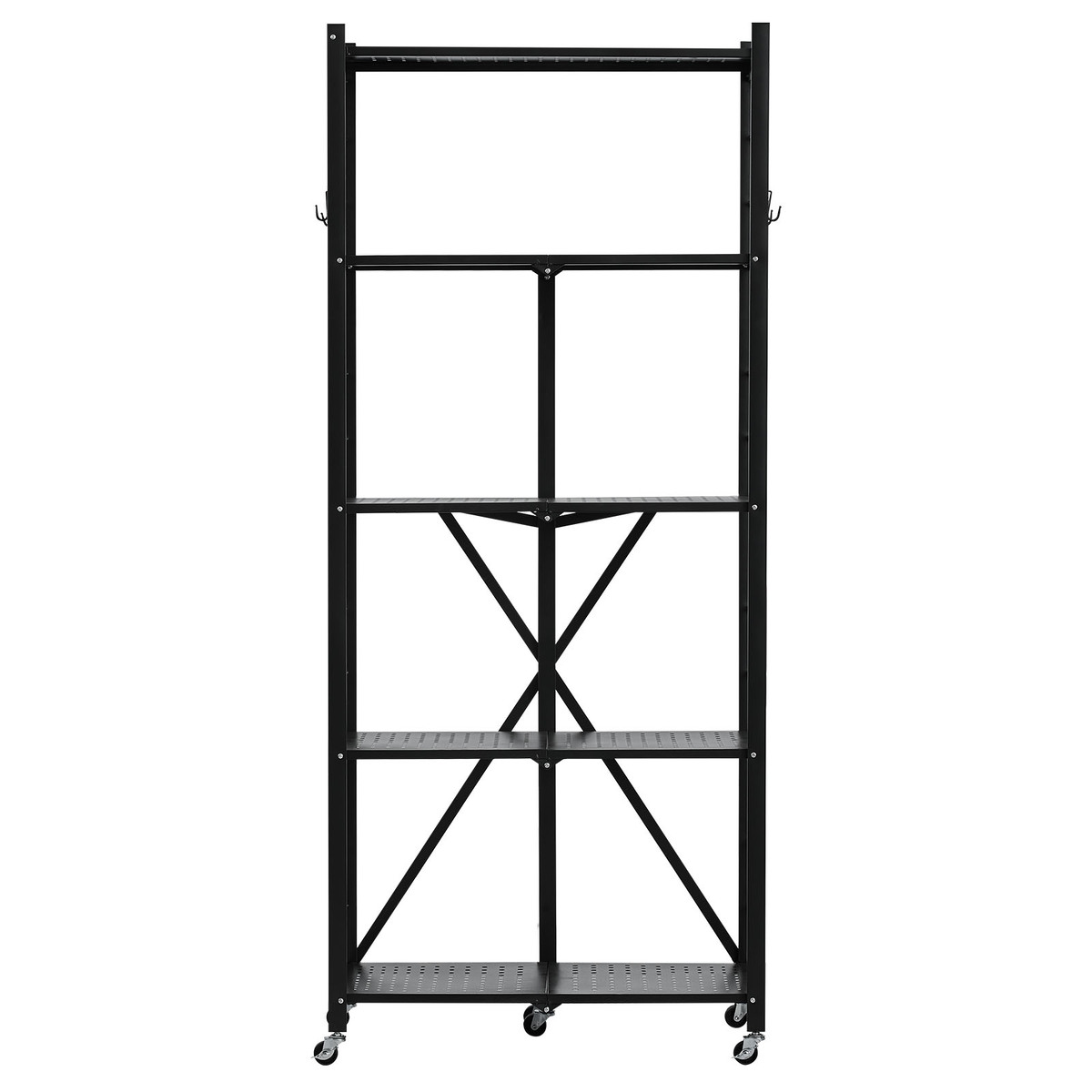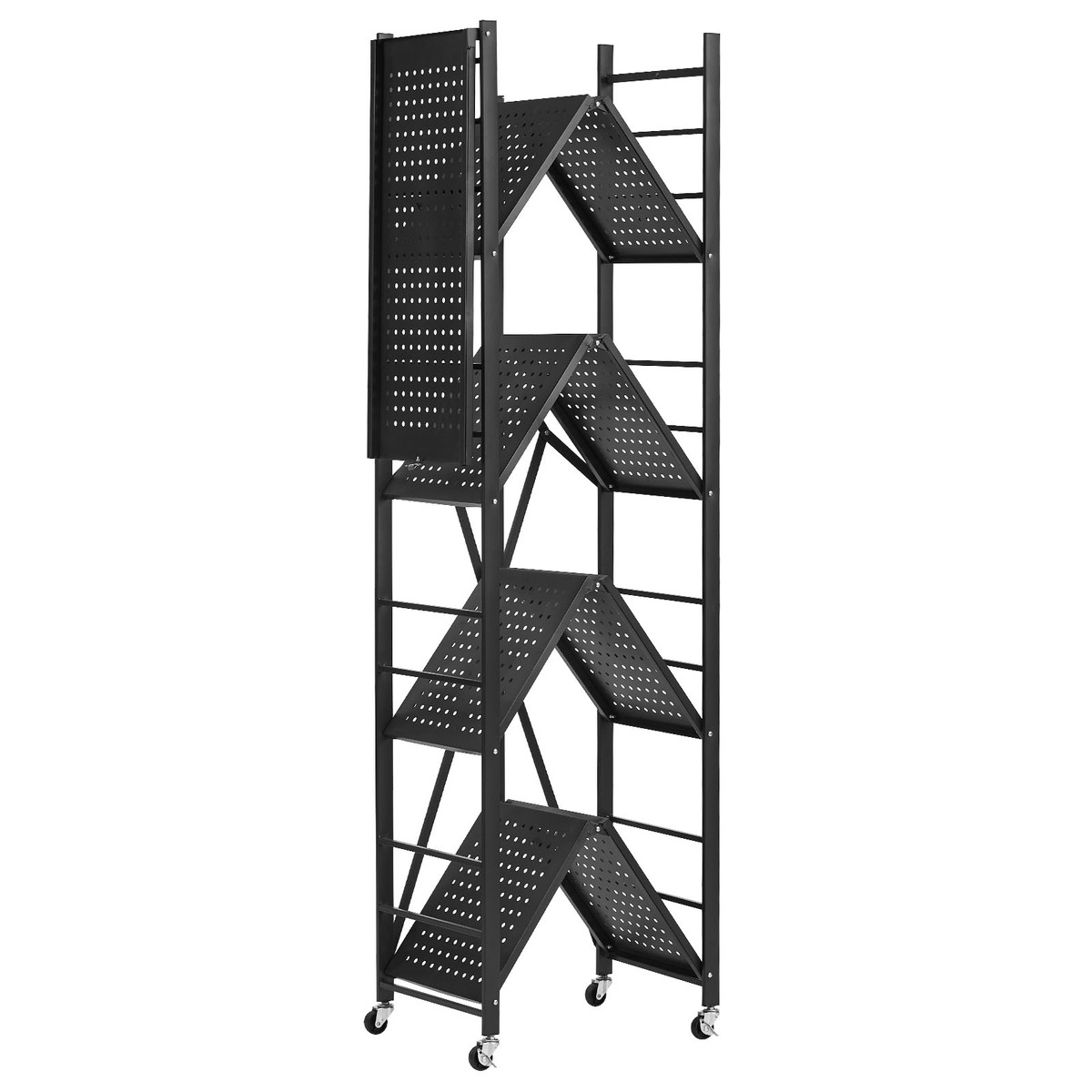 Sturdy and Secure: The Q235A carbon steel frame of the folding shelving unit holds up to 190 lbs per layer. Detachable support feet bring a static load capacity of 750 lbs. Plus, the crossbar keeps everything from slipping. Organize with ease!