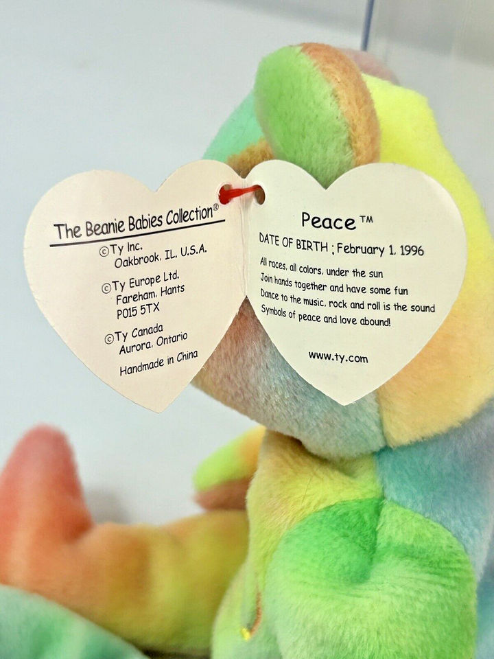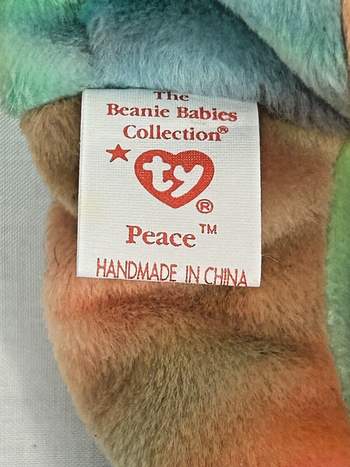 This Ty Beanie Baby Peace Bear from 1996 is a colorful addition to any collection.