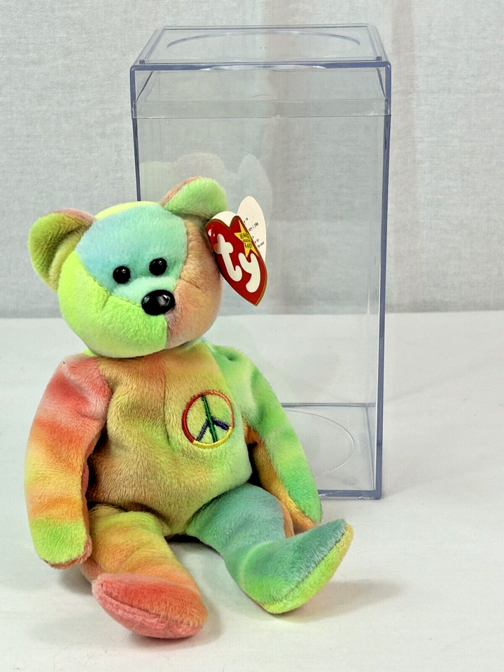 Up for sell is a Rare Ty Beanie Baby: Peace Bear 1996 - Multicolor with Ear Tag