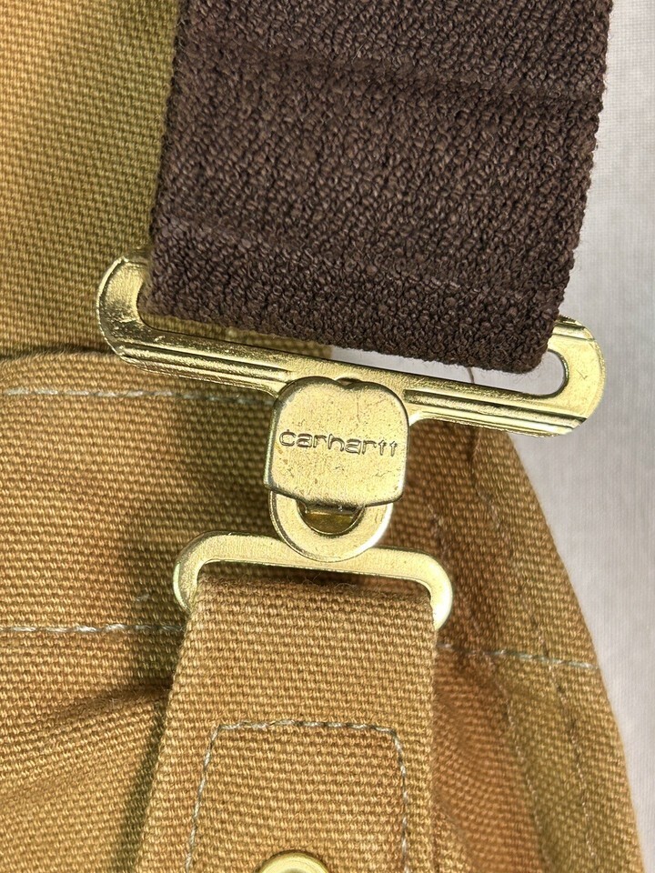 Carhartt R01 Coverall Mens 38 x 32 Brown Duck Canvas Bib Straight Double Knee.
