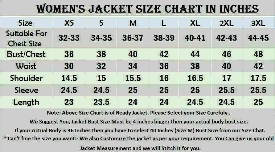 Note: Above Size chart is of Ready Jackets. Please select your size carefully.
