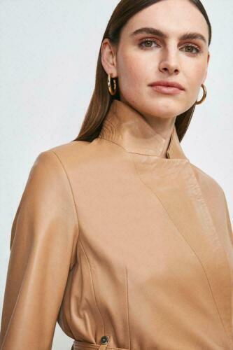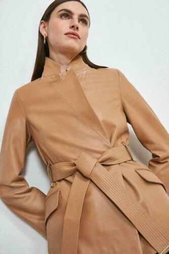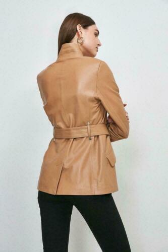 Fashionable Beige Women's Trench Coat Soft Lambskin Leather Formal Halloween Party\AS