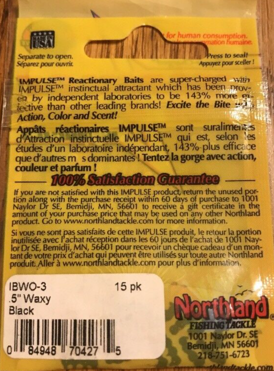 Impulse Northland #IBWO-3 Fishing Tackle IBWO-3 5” Waxy Black-1pk of 15pc-SHIP24