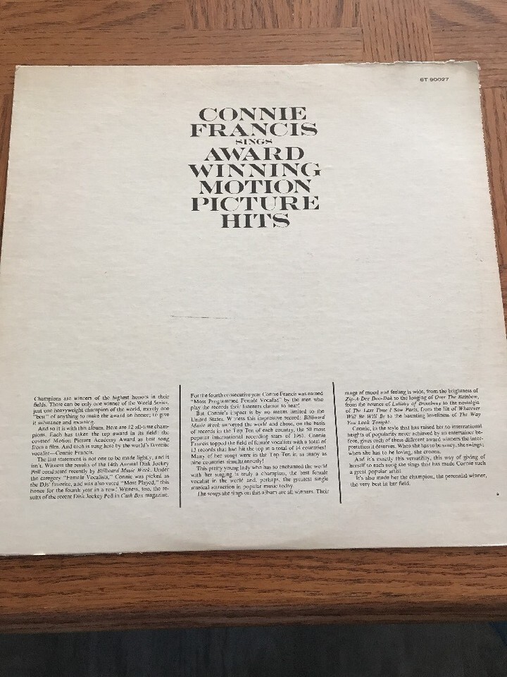 CONNIE FRANCIS sings award winning motion picture hits STEREO album