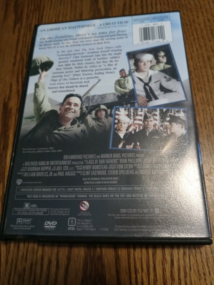 Flags of Our Fathers (DVD, 2007, Widescreen Version).Very Good Condition ; Condition is Used-See Pictures Attached For Exact Condition . Shipped with USPS First Class Mail . You Will Receive 1 ea DVD as shown in pictures attached. SHIPS N 24 HOURS Packed By Our Award Winning Packaging And Shipping Department Long Time E-commerce Seller For Over 20 Years LIMITED AVAILABILITY THANK YOU FOR SUPPORTING OUR FAMILY OWNED USA BUSINESS Collectible Very Good Condition DVD ( DVD And Case Has Wear See Pictures Attached For Exact Description) - DVD's Are Tested And Cleaned With Our Professional DVD Cleaning Equipment Before Shipped - Ships Immediately - Great Product at a Unbelievable Price - Your Chance To Own This Collectible DVD Before Its Gone. Inventory Box #6317