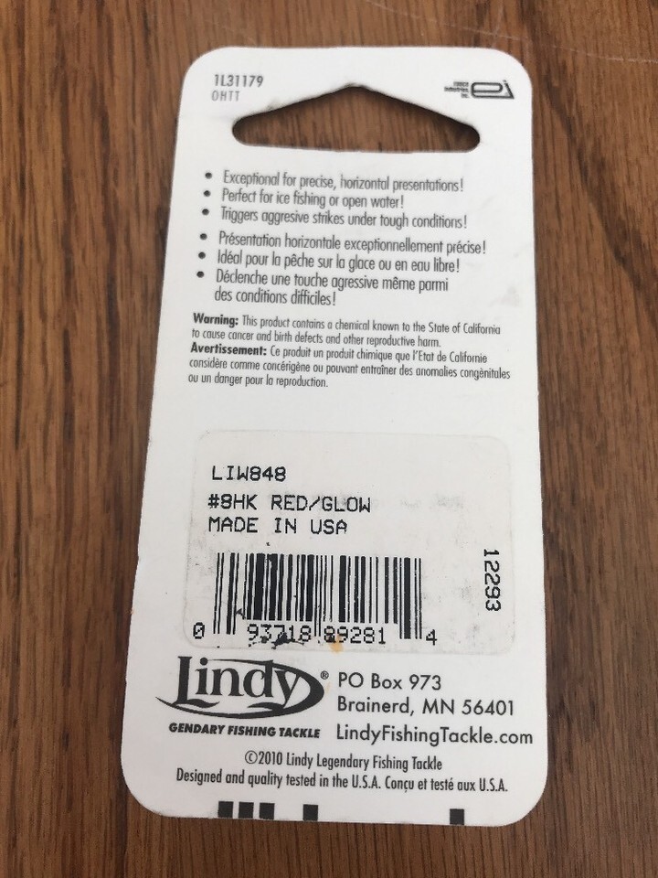 Lindy ICE WORM LIW 848 #8HK RED/GLOW RARE VINTAGE COLLECTIBLE-New-SHIP N 24H