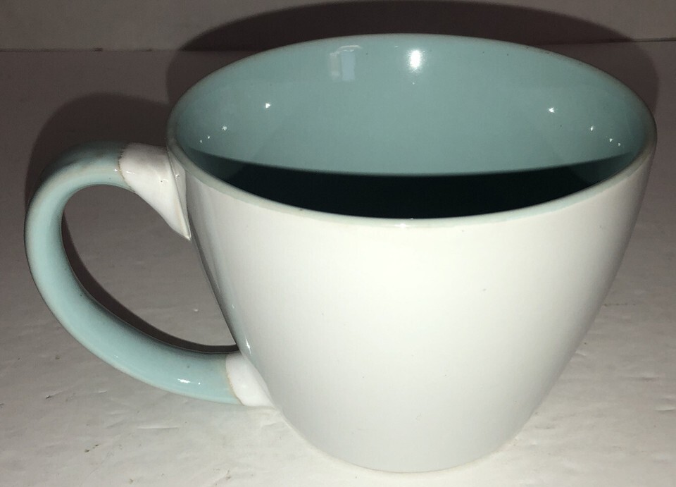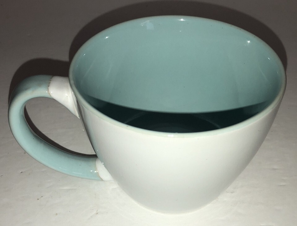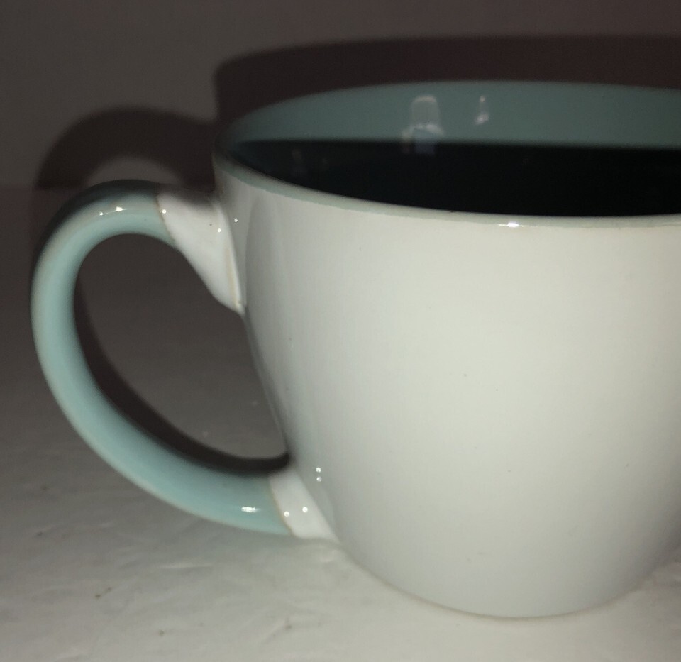 You Will Receive 1 ea Oversized 5? Wide Movie Looking Tea Cup Mug Coffee In White/Teal-NEW