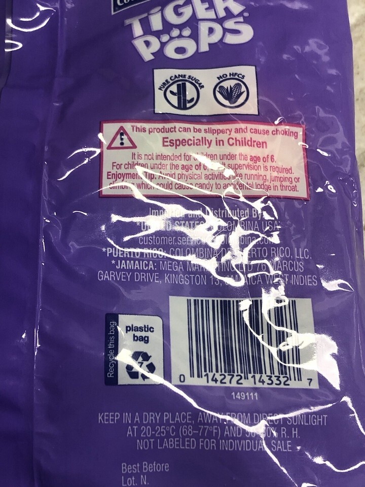 Colombina-Tiger Easter Blueberry/Cherry/Watermelon 22 Lollipops. 7oz/198gm.