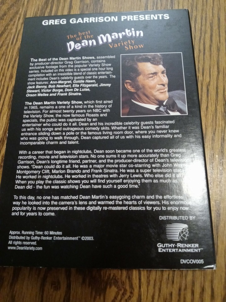 Greg Garrison Presents The Best of the Dean Martin Variety Show Special edition DVD.Very Good Condition ; Condition is Used-See Pictures Attached For Exact Condition . Shipped with USPS First Class Mail . You Will Receive 1 ea DVD as shown in pictures attached. SHIPS N 24 HOURS Packed By Our Award Winning Packaging And Shipping Department Long Time E-commerce Seller For Over 20 Years LIMITED AVAILABILITY THANK YOU FOR SUPPORTING OUR FAMILY OWNED USA BUSINESS Collectible Very Good Condition DVD ( DVD And Case Has Wear See Pictures Attached For Exact Description) - DVD's Are Tested And Cleaned With Our Professional DVD Cleaning Equipment Before Shipped - Ships Immediately - Great Product at a Unbelievable Price - Your Chance To Own This Collectible DVD Before Its Gone. Inventory Box #6301