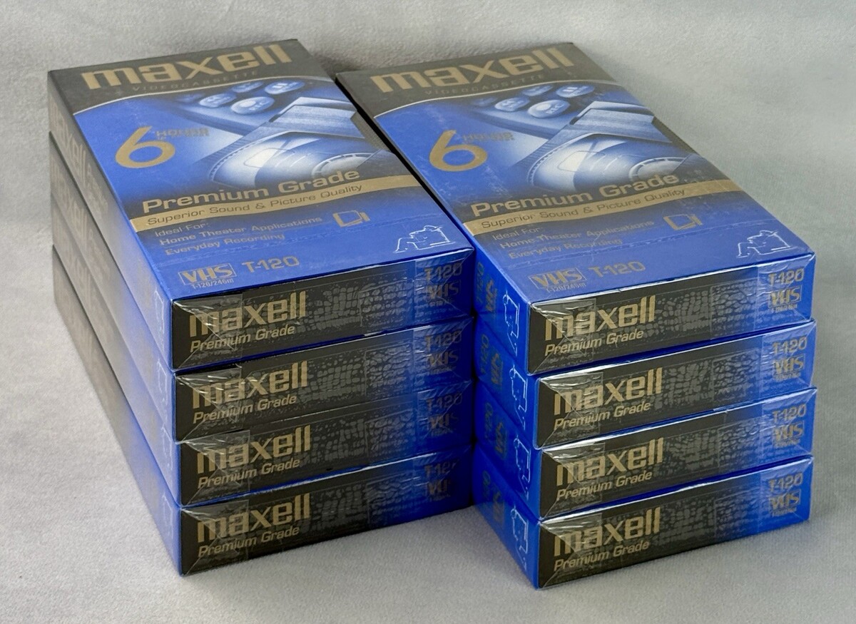 Lot of 8 Maxell VHS Tapes Premium Grade T-120 Blank 6 Hour Video Factory Sealed
