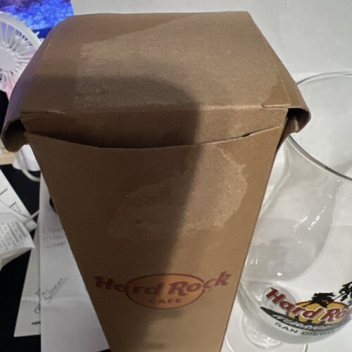 This Hard Rock Cafe San Diego Hurricane Glass is a must-have for any music lover and fan of rock pop. The glassware is perfect for enjoying your favorite beverage while watching the iconic Hard Rock Cafe logo spin around. The industry is music and the subject is the Hard Rock Cafe, making it a great addition to any entertainment memorabilia collection.