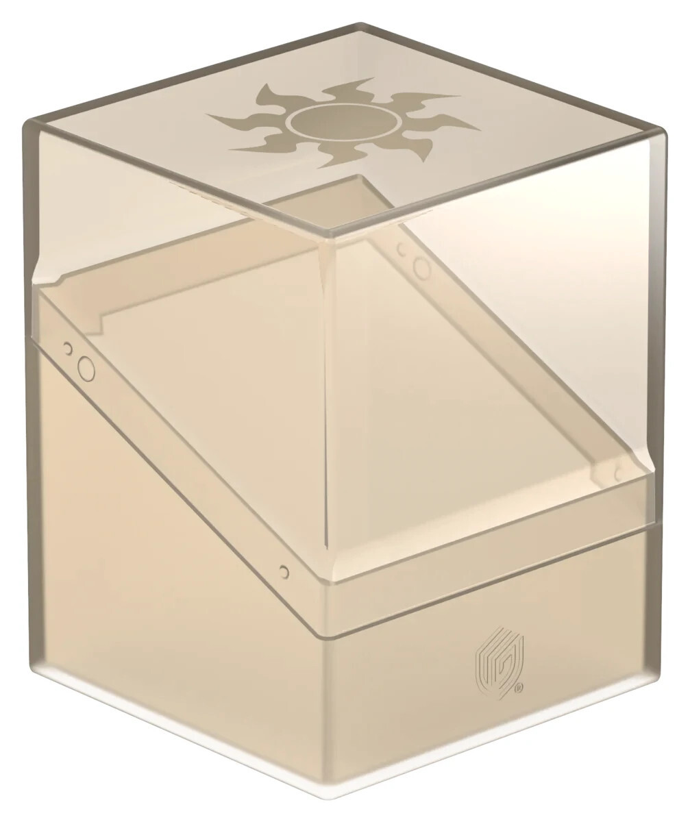 Ultimate Guard's Boulder 100+ Hybrid combines the completely transparent top of the Boulder Clear with a soft-touch base in the style of the original Boulder. The officially licensed MTG deck box is easy to open, but offers reliable protection for your cards thanks to its sturdy case and secure closure. The Boulder 100+ Hybrid holds up to 100 double-sleeved cards and is suitable for all Magic: The Gathering formats such as Commander (EDH), Standard or Modern.