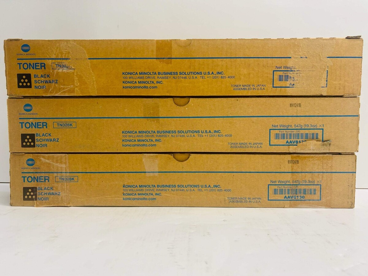 3 Genuine Konica Minolta Bizhub C250i,C300i,C360i TN328 Black Toners TN328K