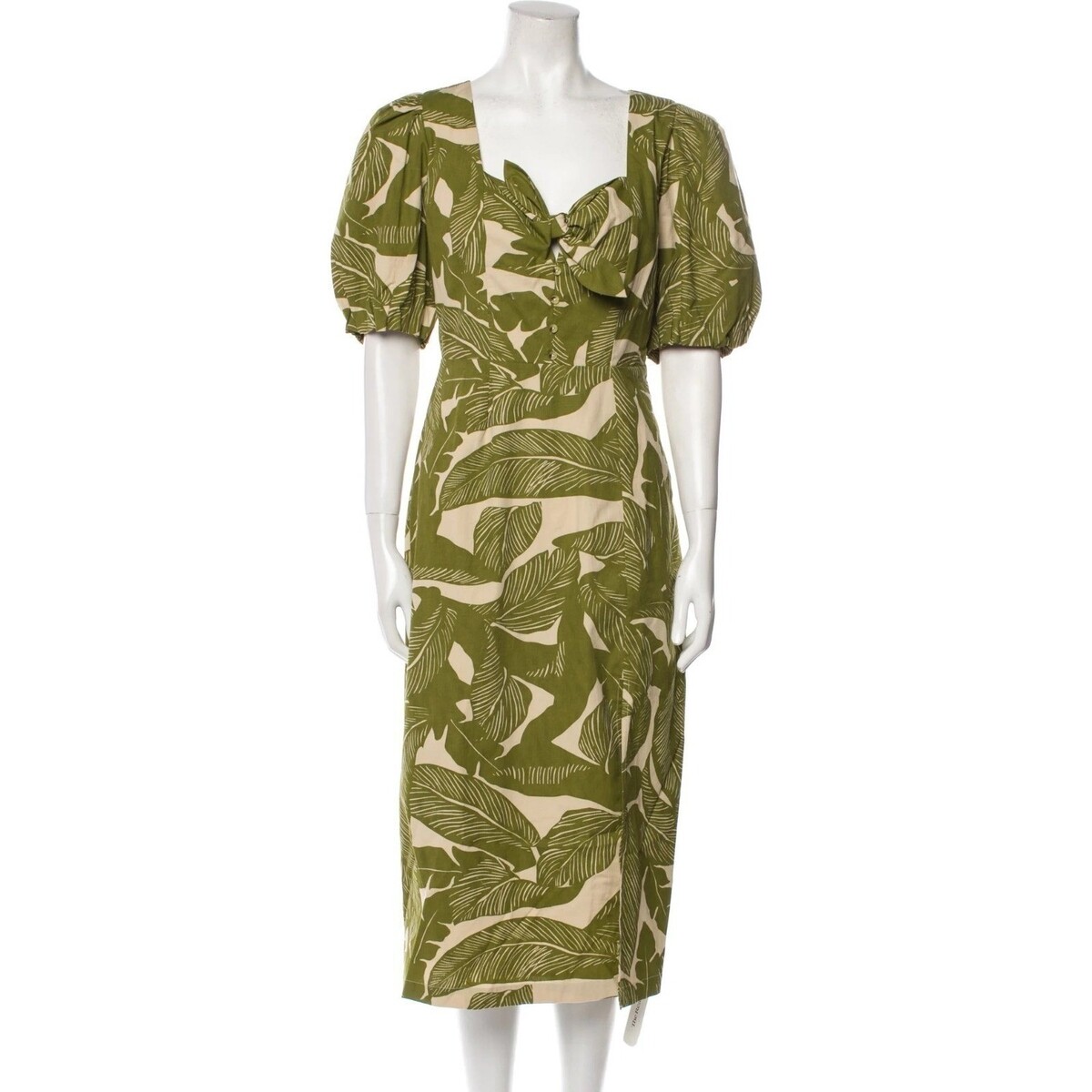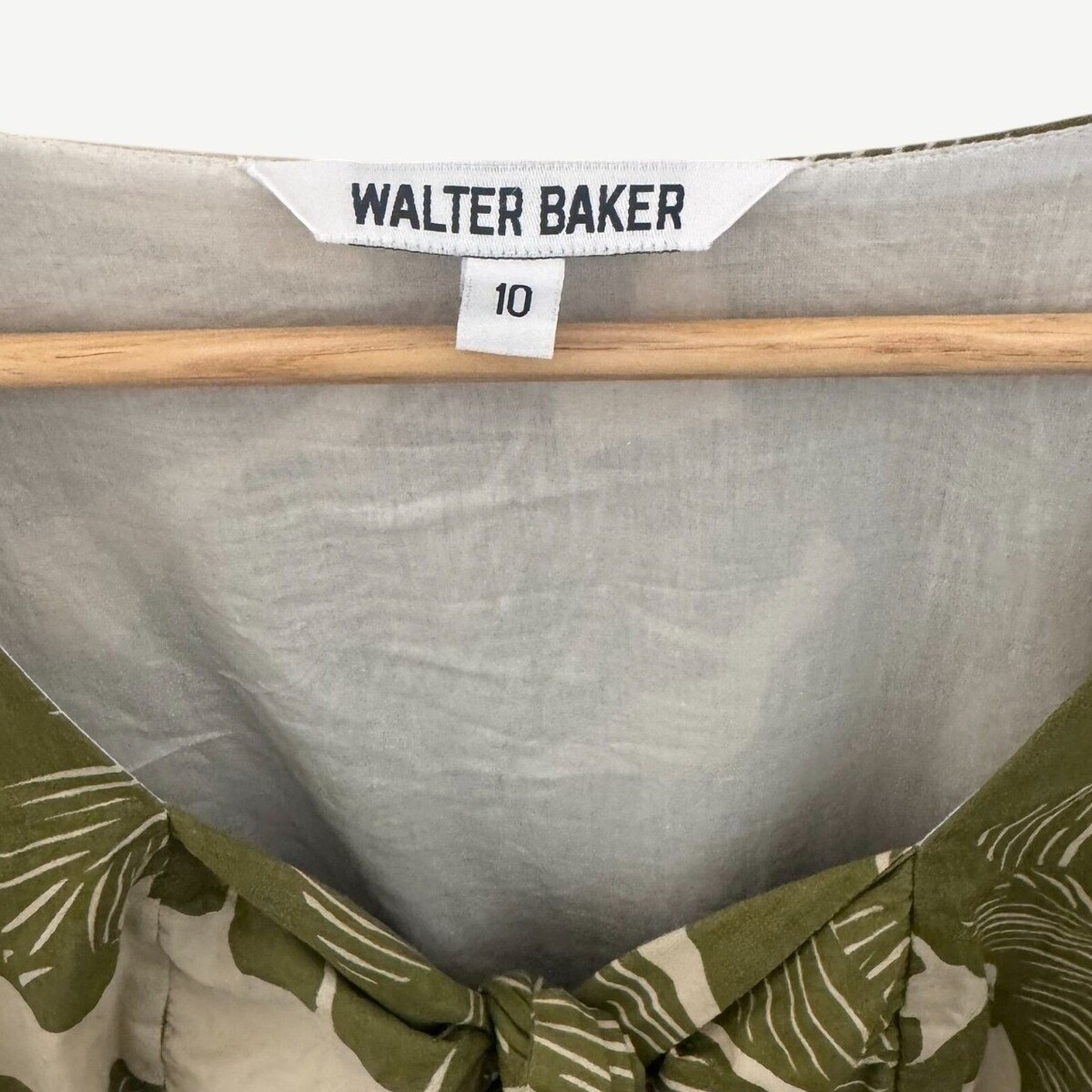 Walter Baker Juanita Tie-Front Palm Print Dress Green Beige Women's Size 10