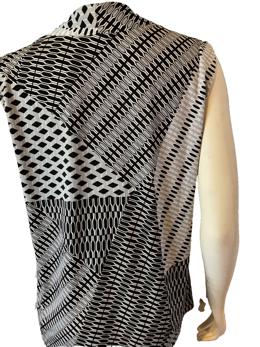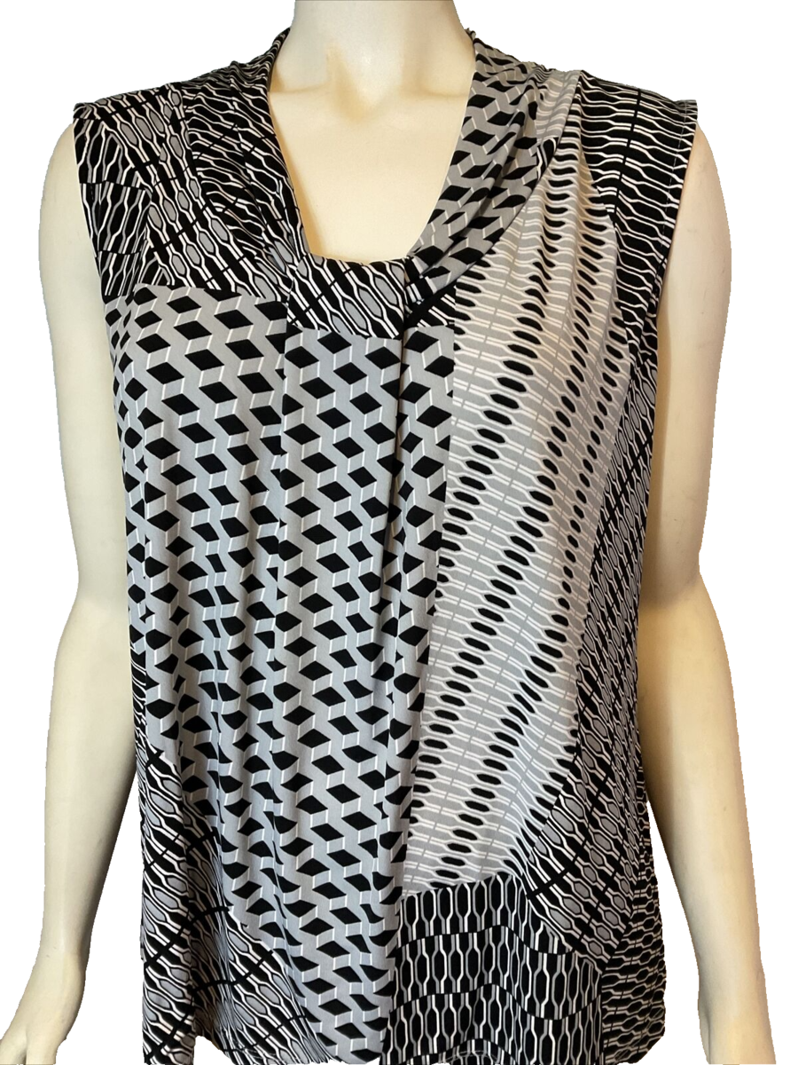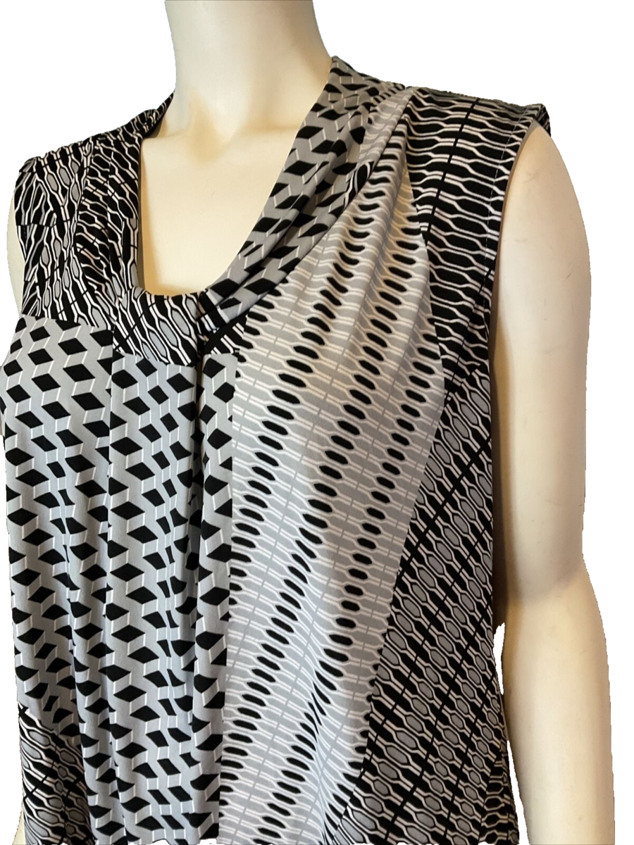 Dana Buchman Women's Sleeveless Geometric Knit Top Size L Grey/White/Black