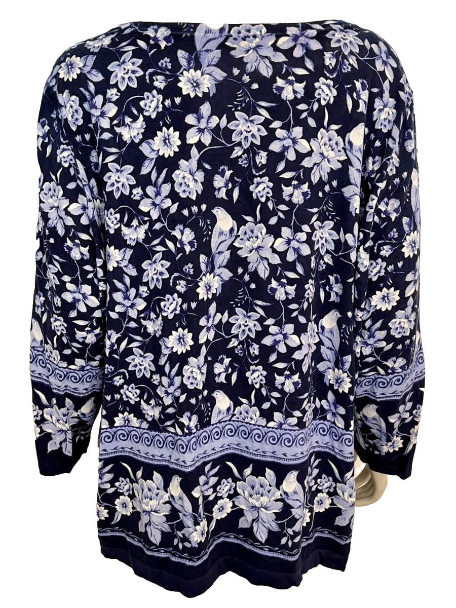 New with tags! Talbots Plus Blue Floral Boat Neck 3/4 Sleeve Sweater
