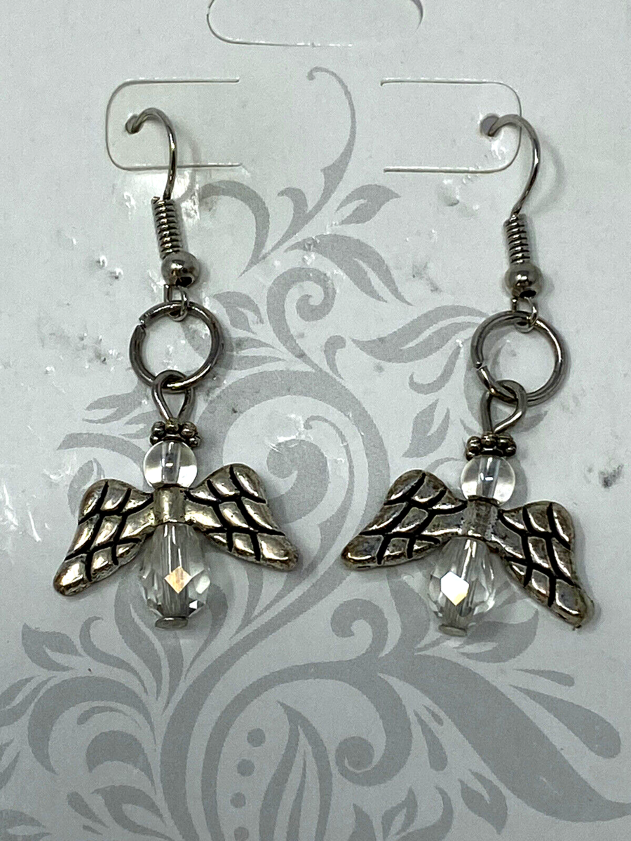 Fashion Earrings Angel Dangles with Clear Glass Stone NEW