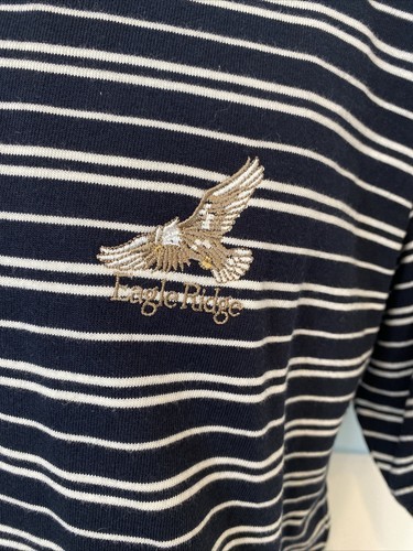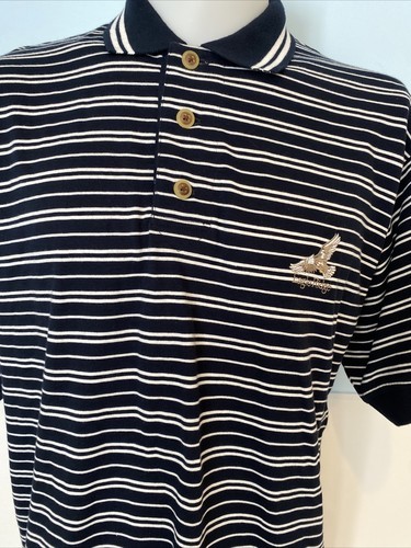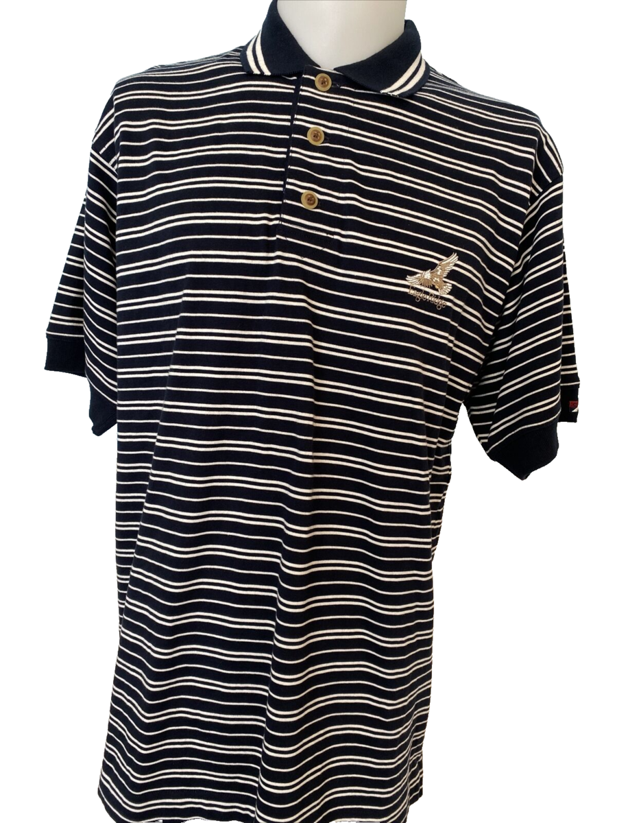 Cutter & Buck Men's Striped Polo Shirt Black/White Size M Eagle Ridge Logo