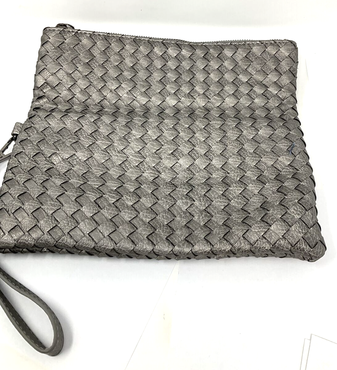 Urban Expressions Gray Metallic Braided Envelope Clutch Purse 10"W x 5.5"H x 1"D