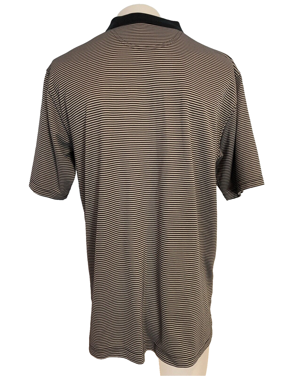 Caribbean Joe Men's Striped Polo Shirt Grey and Black XL