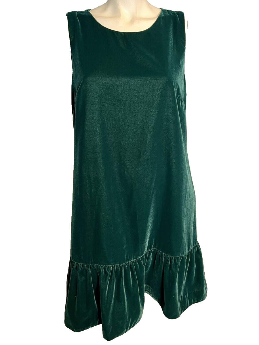J.Crew Women's Sleeveless Velvet Dress with Ruffle Green Size 12