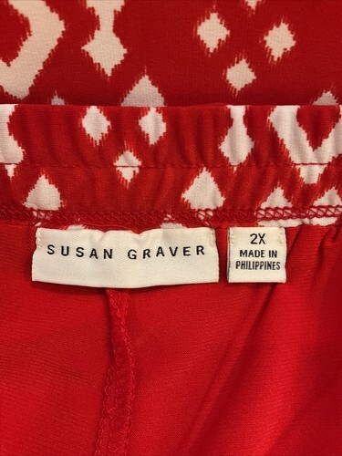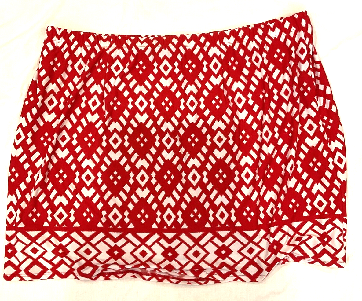 Susan Graver Red and White Geometric Print Lined Knit Pencil Skirt Size 2X