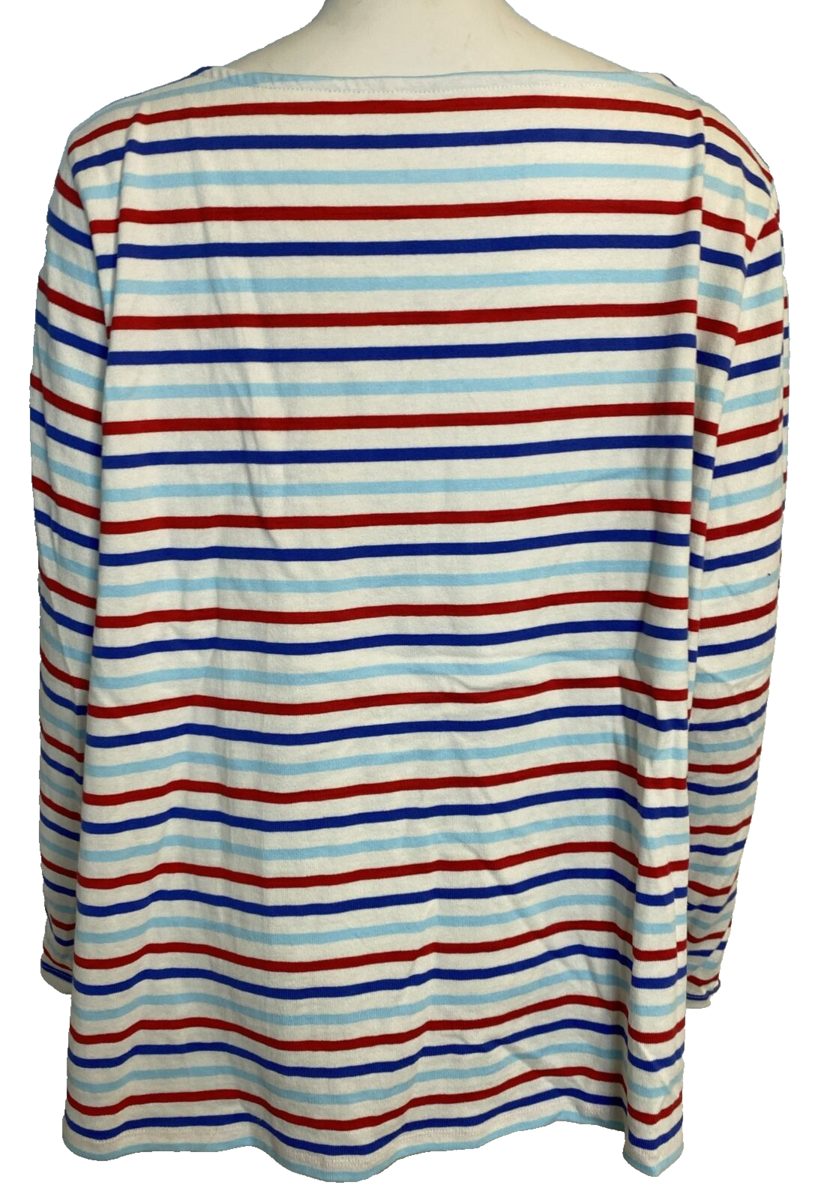 Talbots Plus White, Red, Blue Striped Boat Neck 3/4 Sleeve Top
