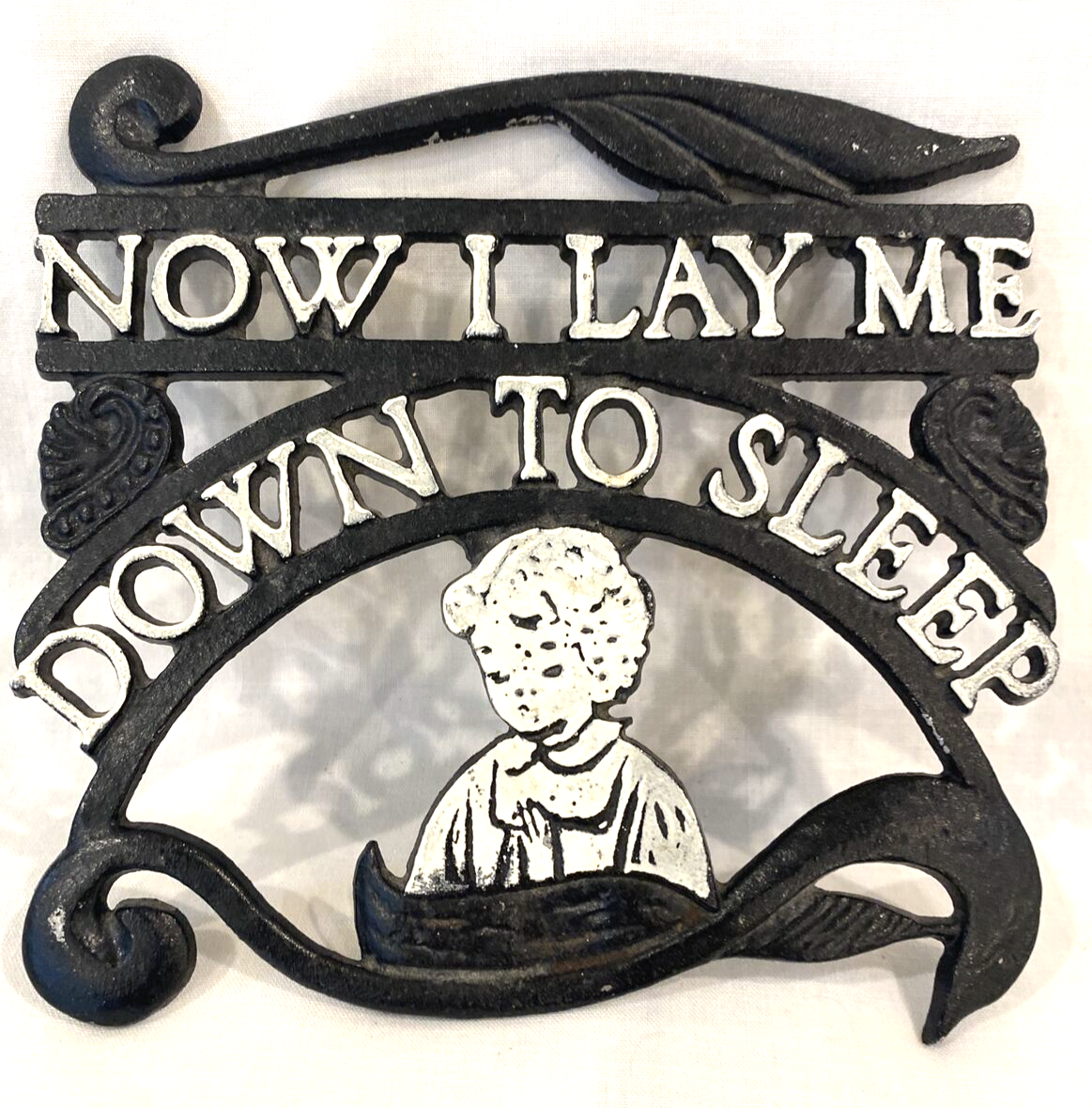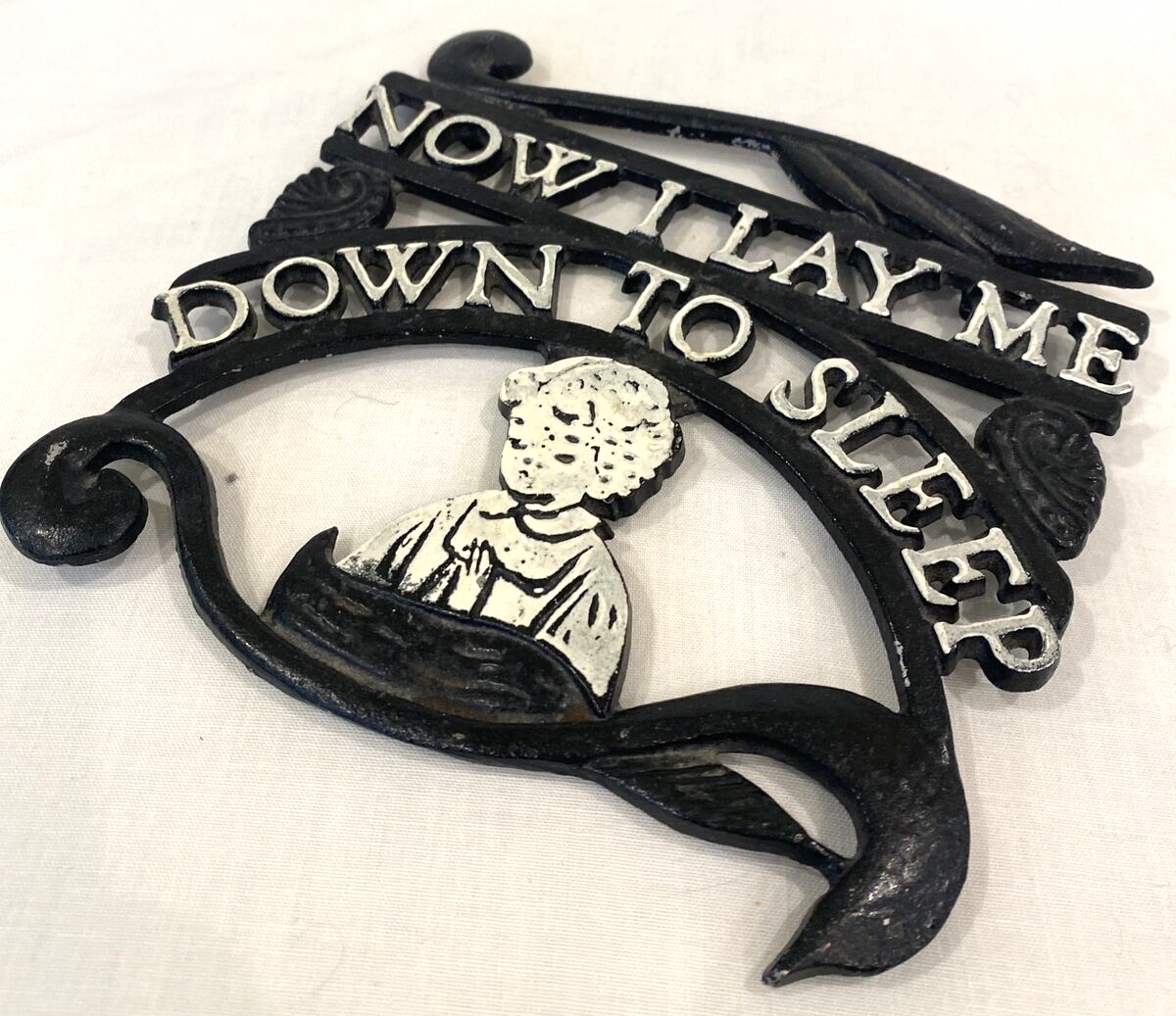 Vintage Wrought Iron Trivet "Now I Lay Me Down to Sleep"