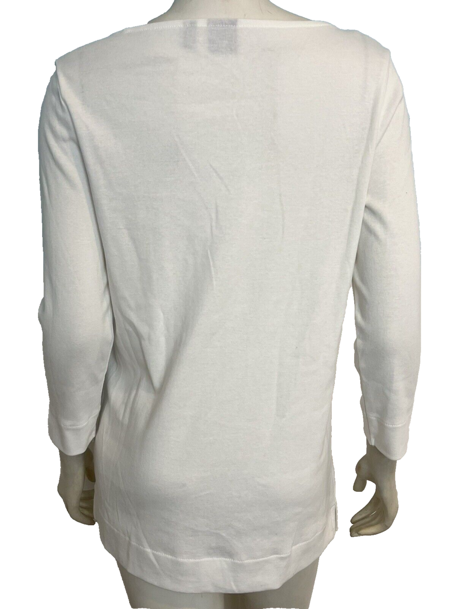 Rafaella Studio Women's 3/4 Sleeve Tee Shirt with Black Micro Gems White M