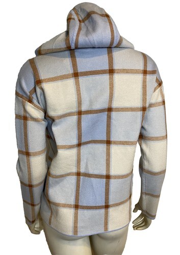 NWT Cynthia Rowley Blue and Brown Checked Hooded Zip Front Sweater Sz S