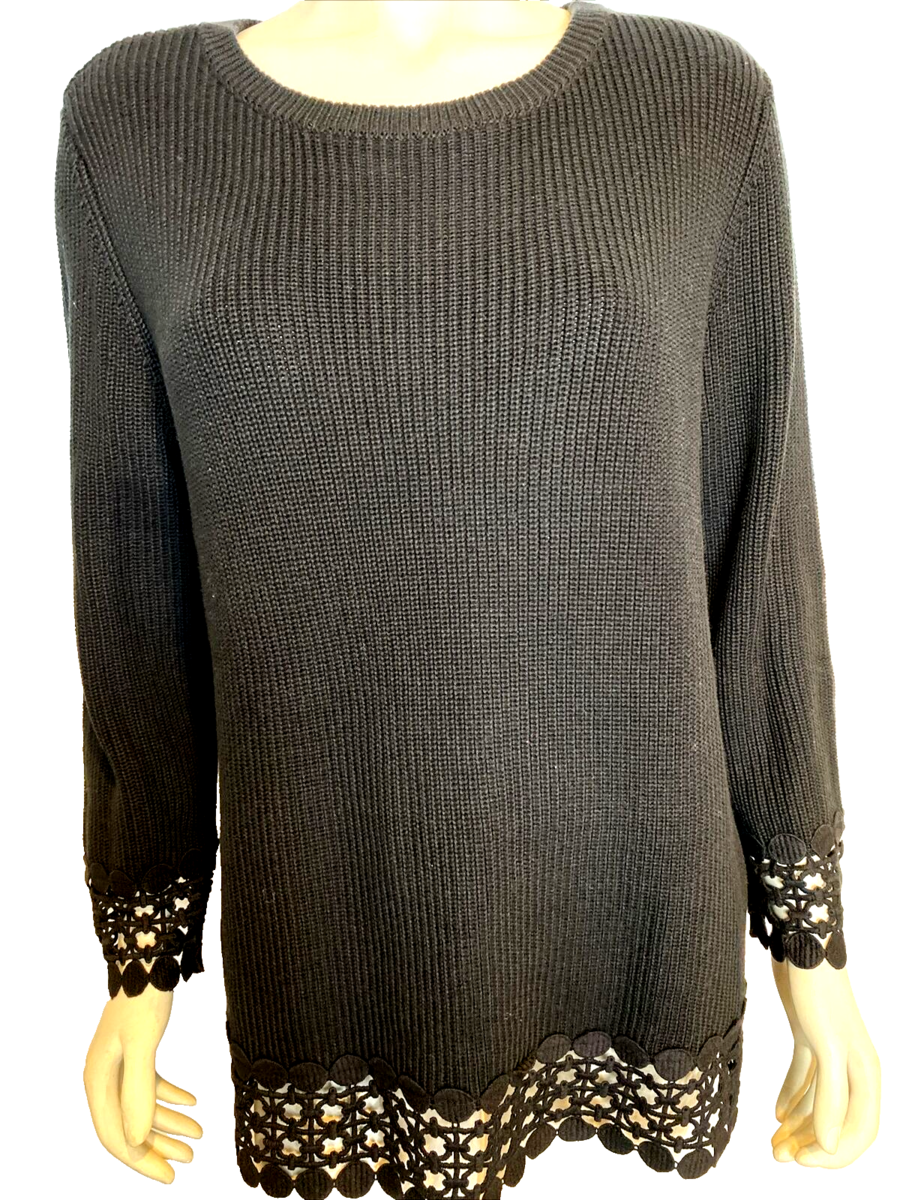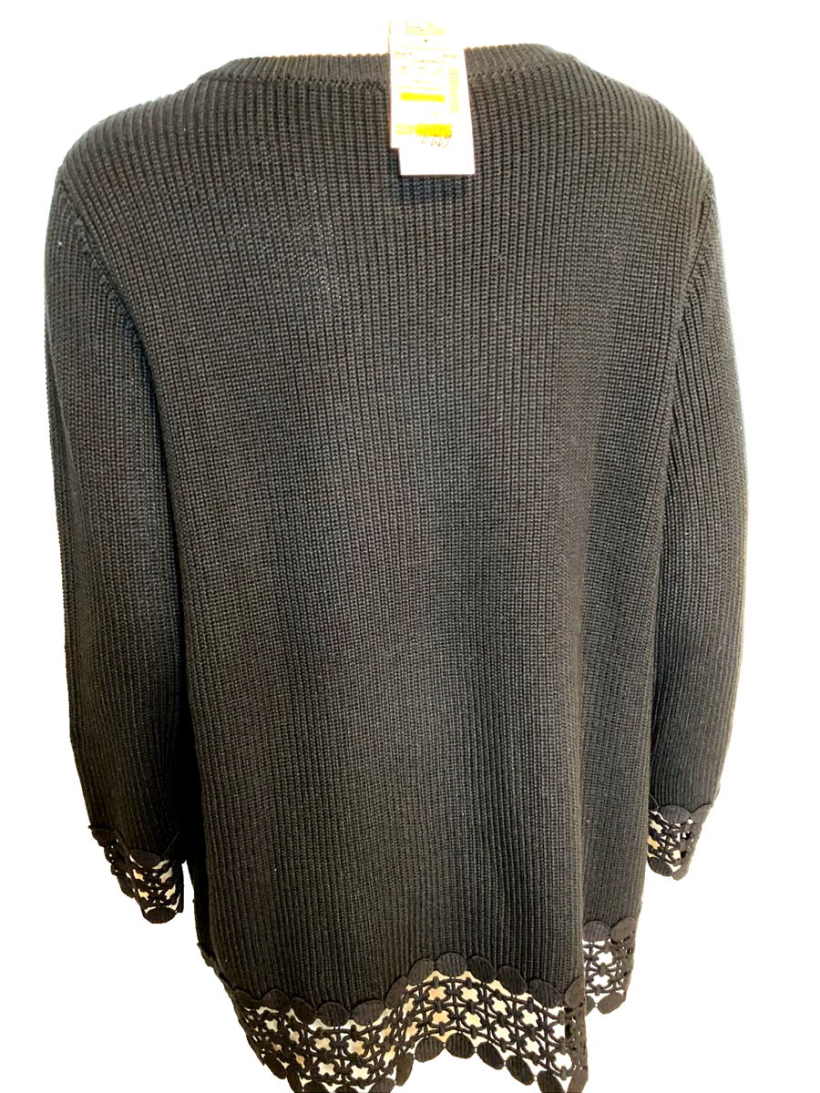 New with tags! Peck Peck Black Ribbed Knit 3/4 Sleeve Sweater Round Neck Lace Hem