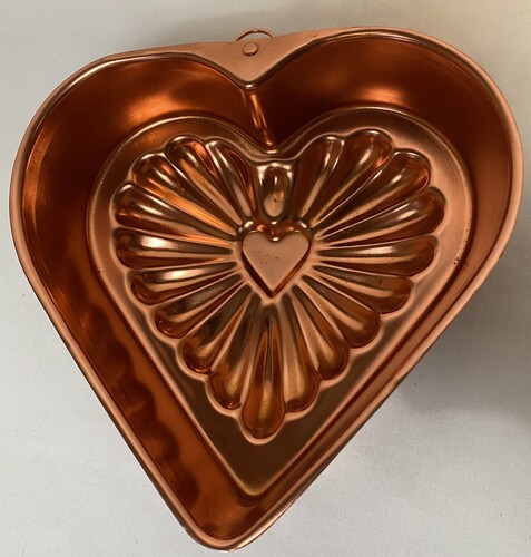 Vintage Copper Tone Heart Shape Valentine Cake Mold Hanging