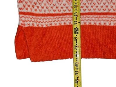 The AERIE FURRY OVERSIZED SWEATER in size M is a cozy and warm piece perfect for various occasions such as travel, weddings, parties, or casual wear. This knitted sweater features a crew neck and long sleeves, providing a comfortable fit. The vibrant orange color with a burst of hearts and diamonds adds a touch of retro festival style to your wardrobe. Made from acrylic nylon fabric, this sweater offers a blend of comfort and style for all seasons.