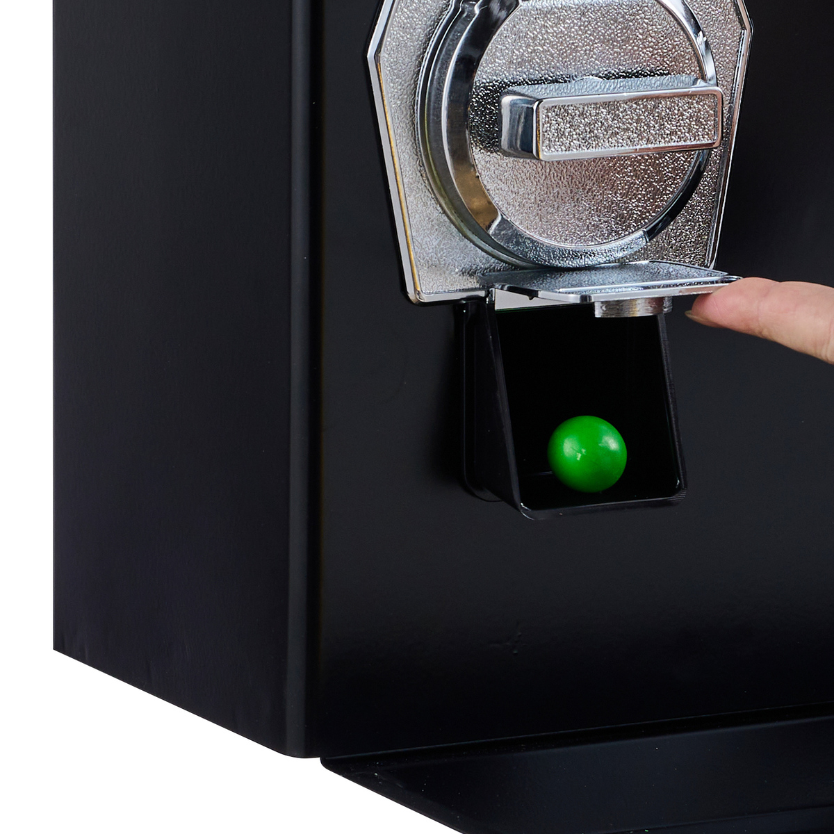 Protecting Candies and Coins: The commercial gumball machine is equipped with two anti-theft bucket locks on the top cover to protect the jars from unauthorized opening. Beneath the three exits is a tray to prevent purchased products or incorrectly inserted coins from accidentally falling to the floor. All coins are collected in a locked drawer for easy management.