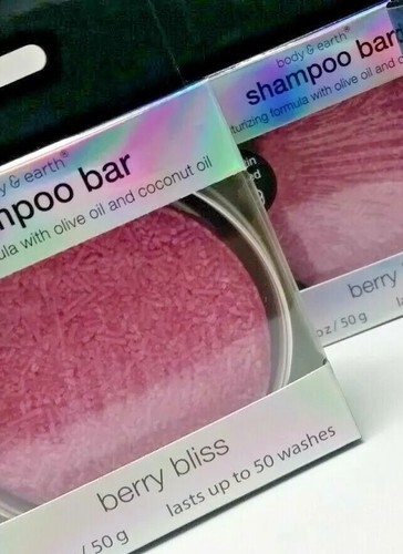 LOT 2 Shampoo Bars Berry Bliss w/ Travel Tin - Lasts Up To 50 Washes Each - Body Earth