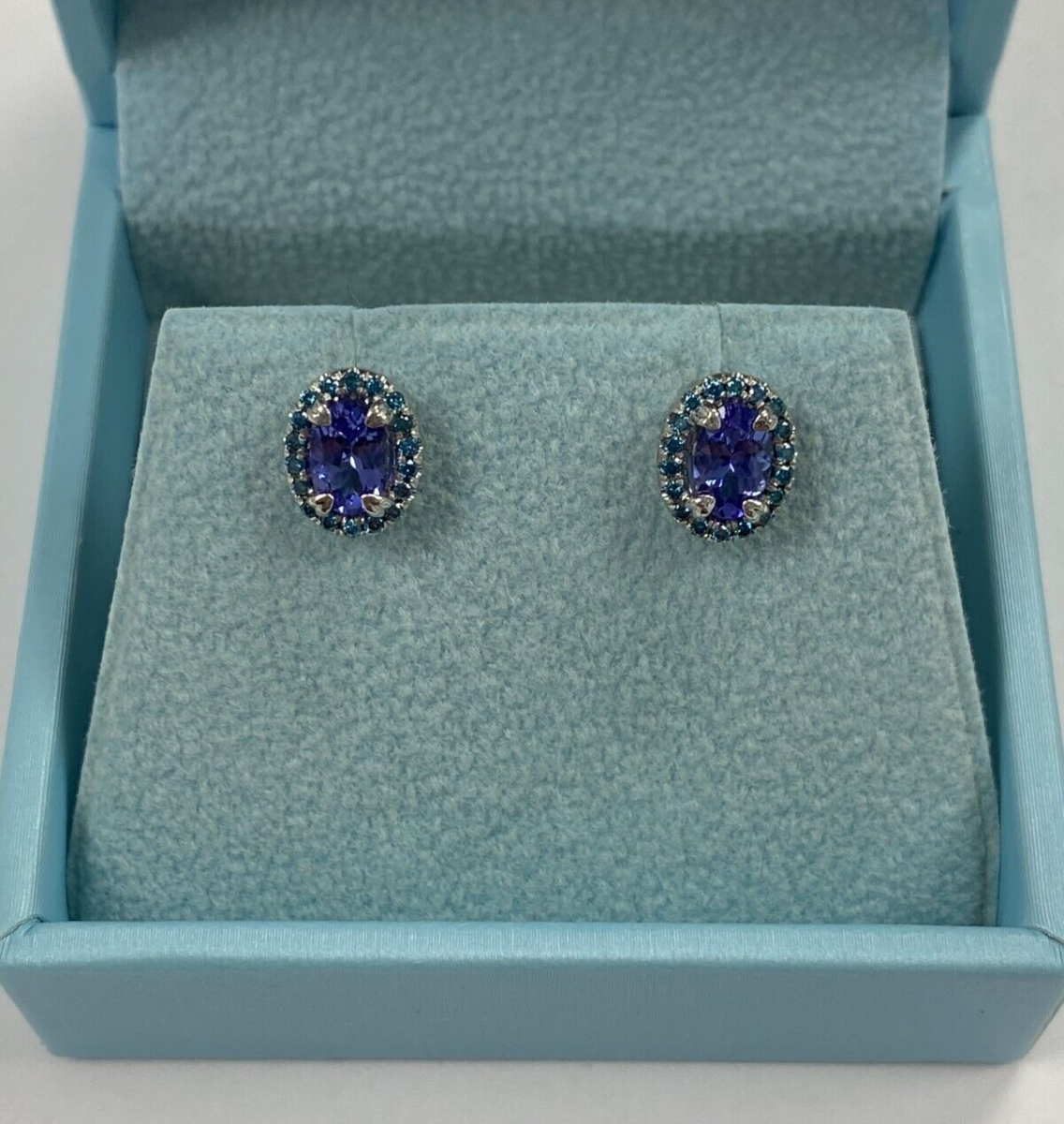 1 Quilate Ovalado Violet Azul Tanzanita Halo Diamante Dormilonas 14k Oro Blanco